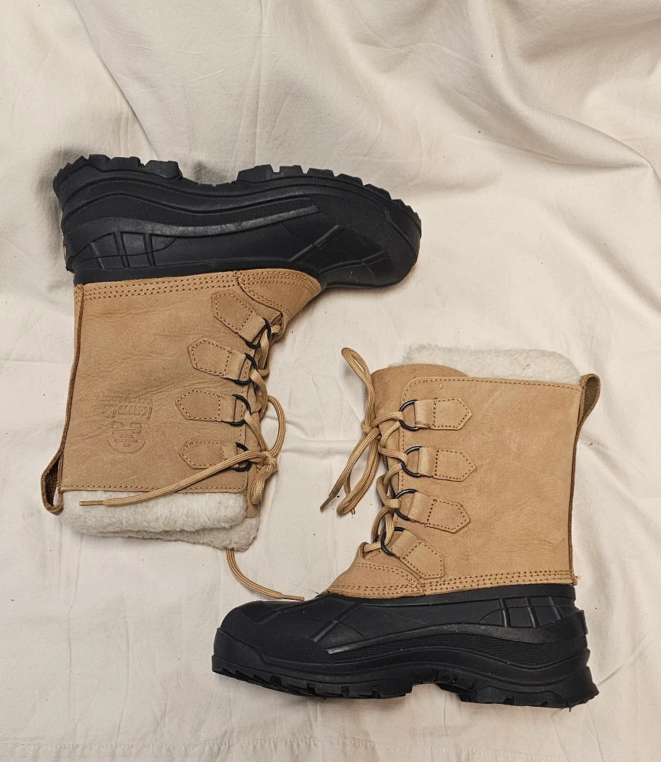 Kamik Quest waterproof winter boots, perfect for keeping your feet warm and dry during the cold months! They are womens size 6, barely worn. The boots feature a durable construction and a comfortable fit, making them ideal for outdoor activities