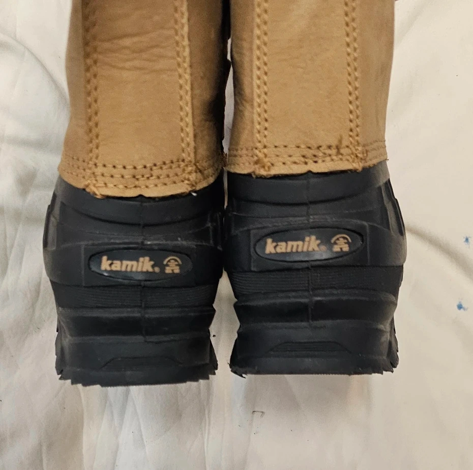 Kamik Quest waterproof winter boots, perfect for keeping your feet warm and dry during the cold months! They are womens size 6, barely worn. The boots feature a durable construction and a comfortable fit, making them ideal for outdoor activities