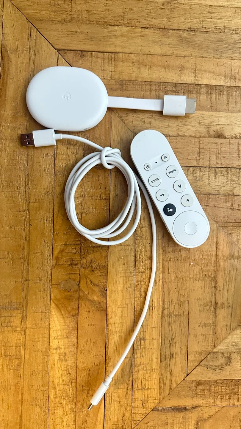 Selling a Google Chromecast with Google TV in great condition! Comes with the remote and power cable so you can start streaming right away. It's super easy to set up and use, and it brings all your favourite apps to your TV #clearout