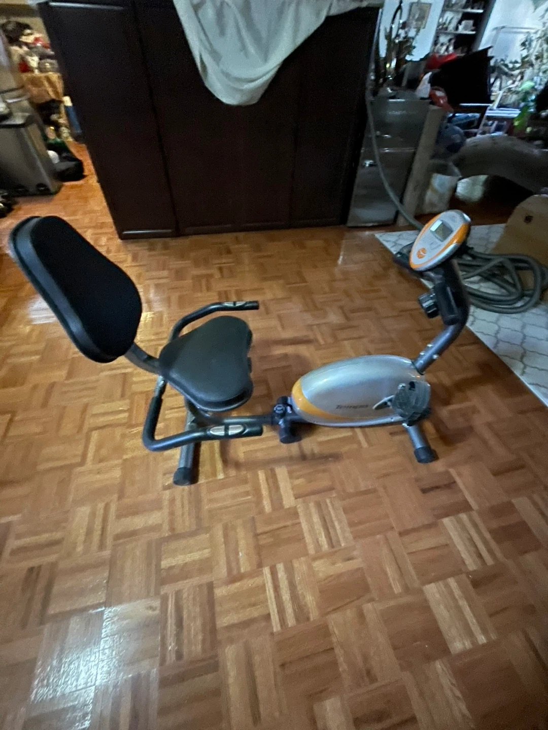 Selling a Tempo recumbent exercise bike in good condition. It's perfect for getting a workout in at home. It has an adjustable seat and different resistance levels to customize your workout. The display shows time, distance, speed, and calories burned. Great for all fitness levels!