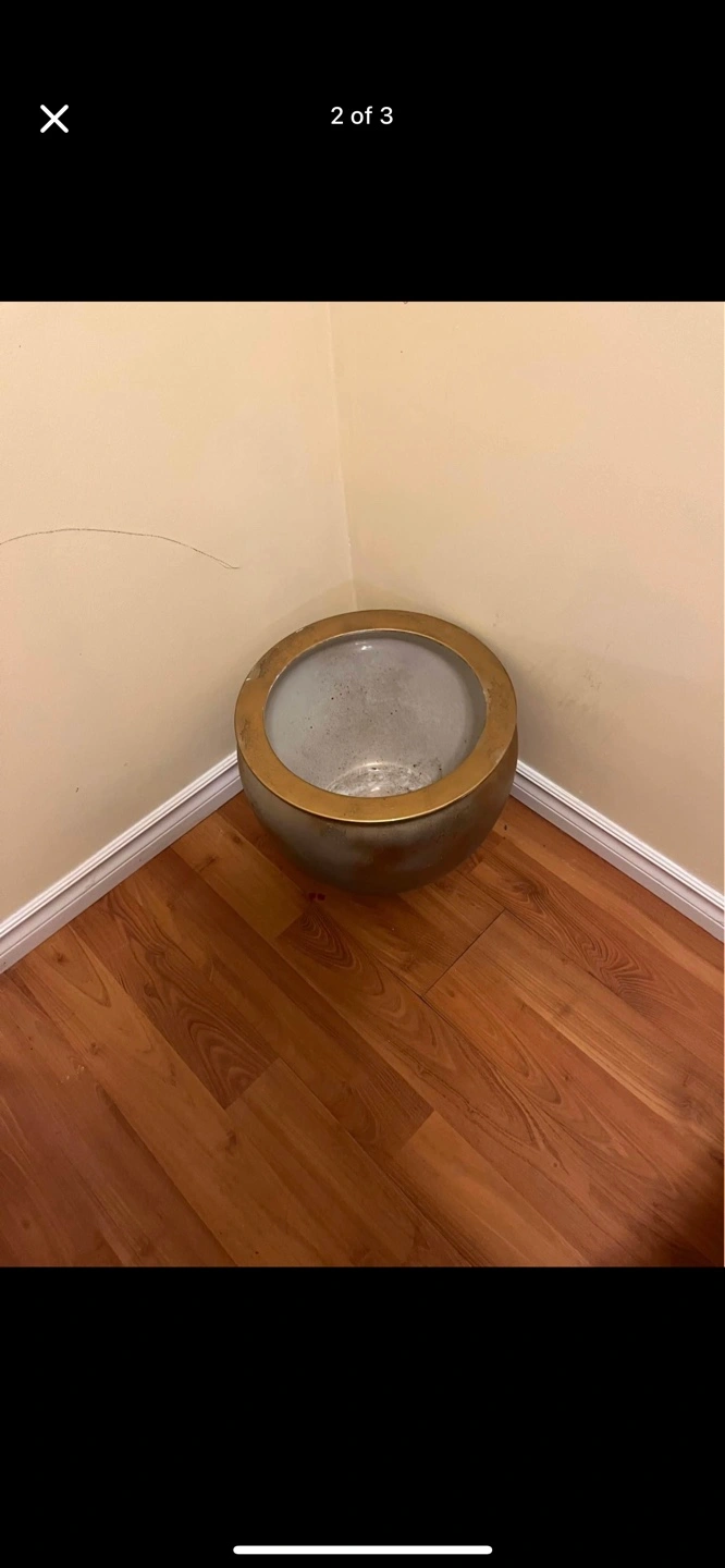 Selling a gold-trimmed planter, perfect for adding a touch of elegance to your home or garden! It's in good condition and ready to house your favourite plants
