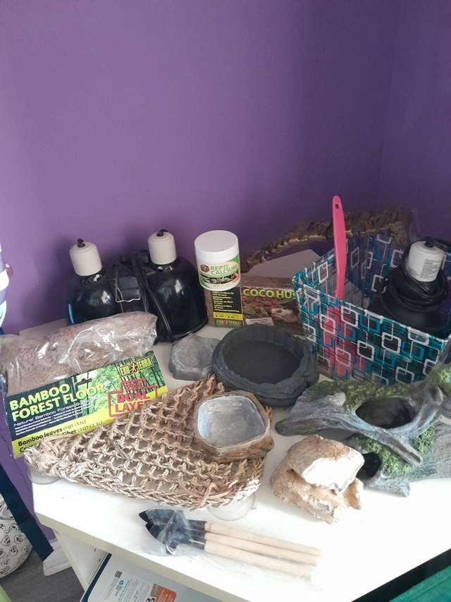 Zoom in on picture with accessories to really see everything you get. Lots of soils, lamps, calcium, gardening tools, and two 10 gallon tanks, one 18 gallon tank, and a starter tank for babies. Everything in photos for only $160! All in working good condition. Everything you need to get your amphibians set up.
