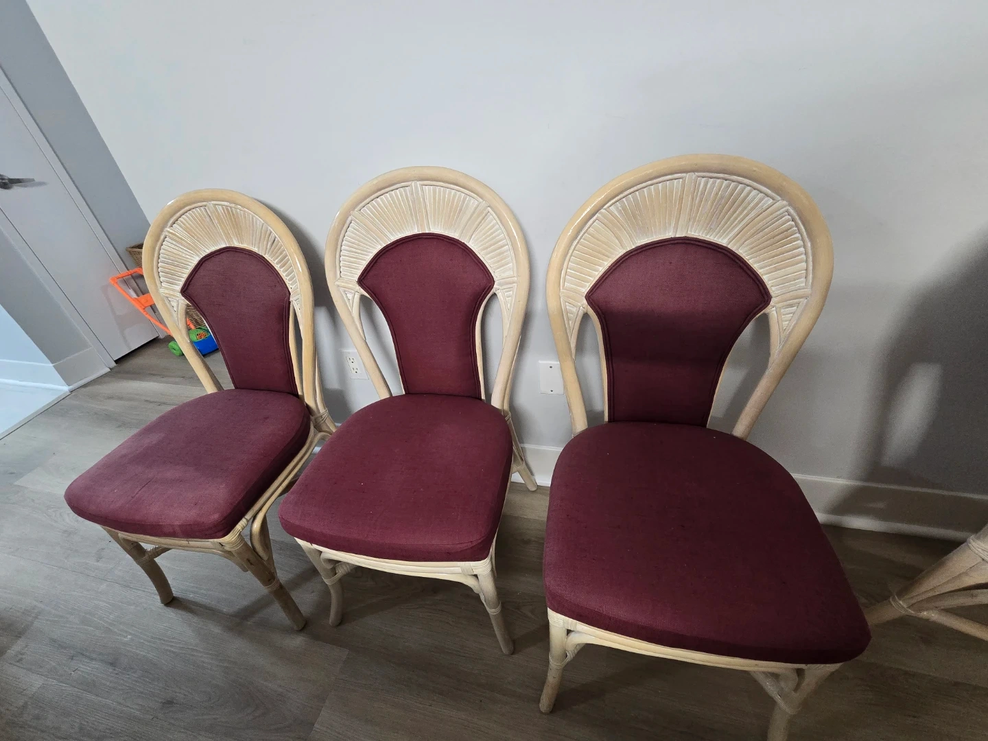 Buy & SellSet of 4 Rattan Dining ChairsSet of 4 Rattan Dining Chairs$105Selling a set of 4 rattan dining chairs! They have a unique design and would look great in any dining room. The chairs have a maroon seat cushion.ConditionGoodWHERE TO MEETDavisville StationView MapSELLERverifiedSAYDavisville Village711 review0 chats·1 favorites·46 viewsSEND CHAT TO SELLERHi SAY! I’m interested in your listing.Hi SAY! I’m interested in your listing.Get the Karrot app to chatSign In to chat