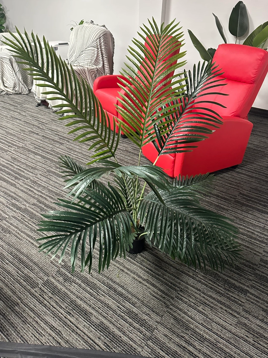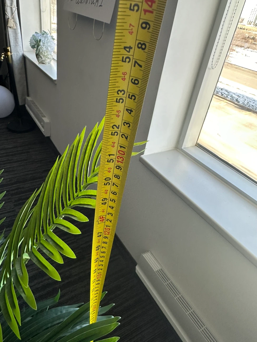 Selling a faux palm tree that's in great shape! It measures about 54 inches tall, perfect for adding a touch of greenery to your space without the upkeep