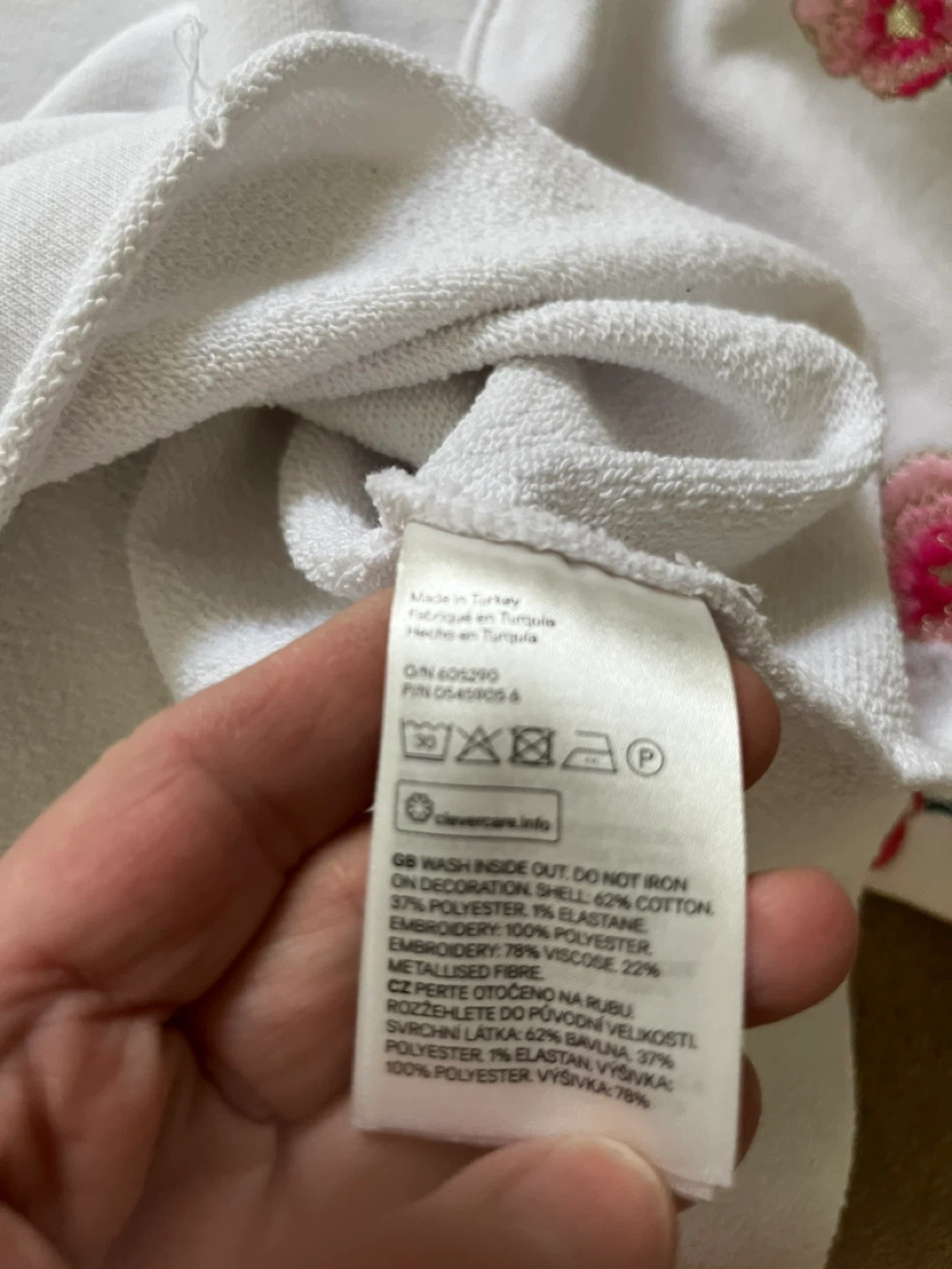 This H&M sweatshirt features beautiful floral embroidery on the sleeves. It's a size M (US 10, CA 10)