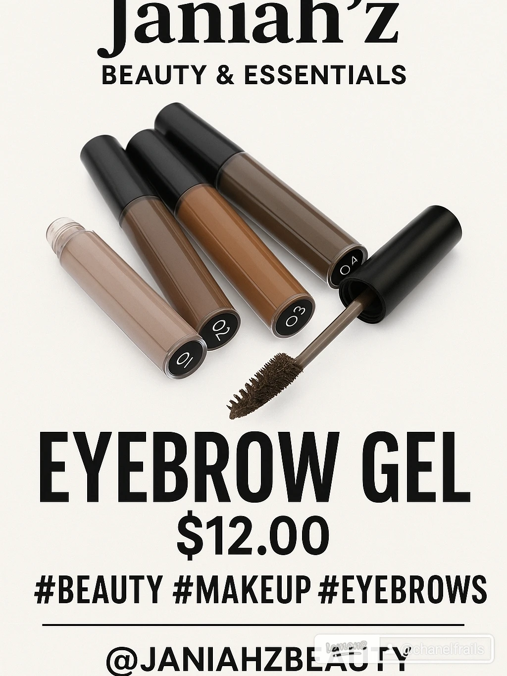 Selling a Janiah'z Beauty & Essentials Eyebrow Gel. It's waterproof, smudge-proof, and long-lasting. The shade is 01. Perfect for defining your brows!