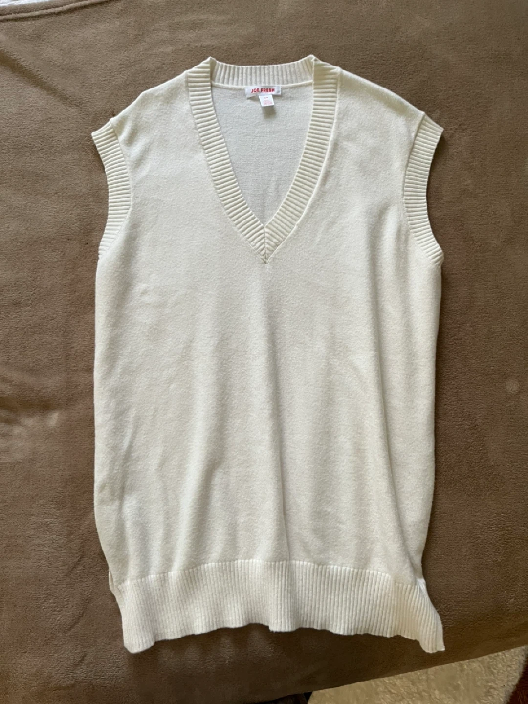 Selling a cream-coloured sweater vest from Joe Fresh! It's a size large.