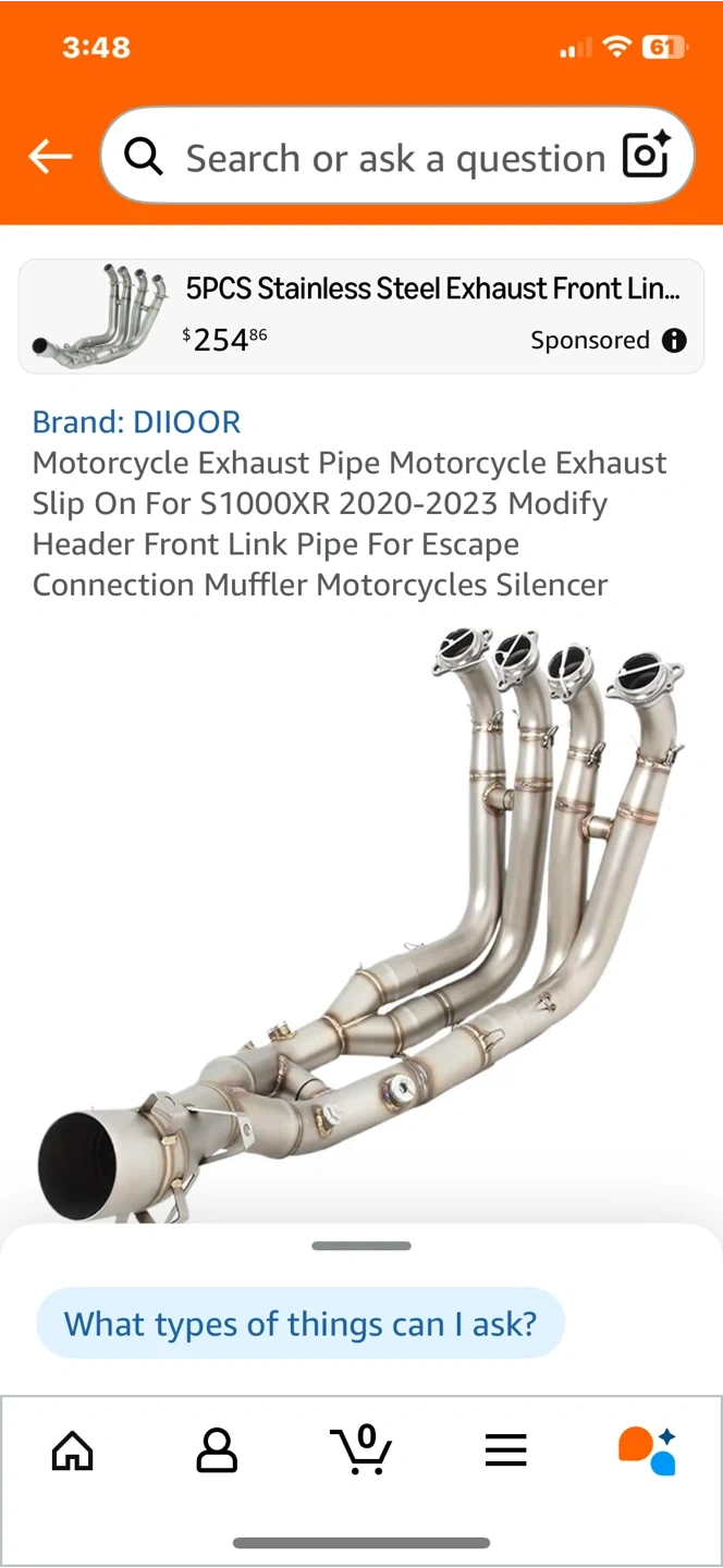 Selling a DIIOOR motorcycle exhaust pipe, specifically designed for the S1000XR models from 2020 to 2023. This stainless steel exhaust front link pipe is a great way to modify your header front link pipe for better escape connection. It also functions as a muffler and silencer for motorcycles.