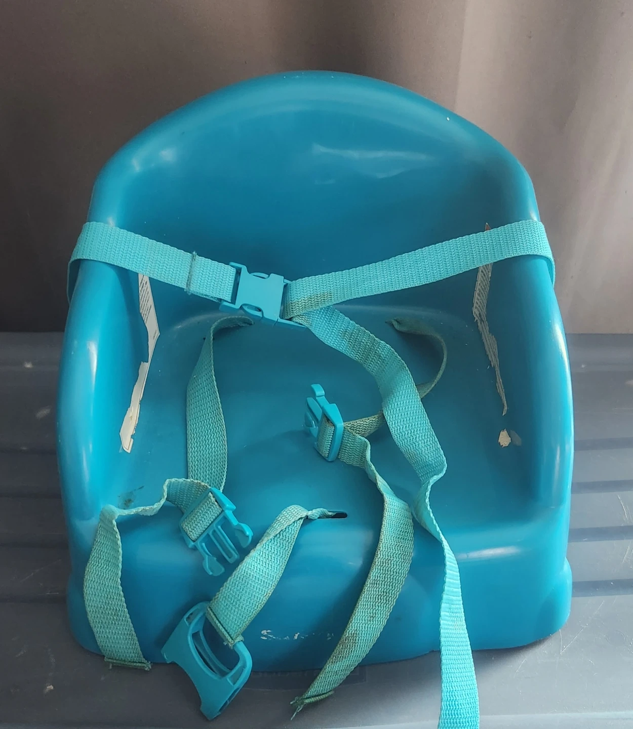 Selling a blue baby height chair seat! It's got straps to keep your little one secure. There are some signs of use, as you can see in the pictures.