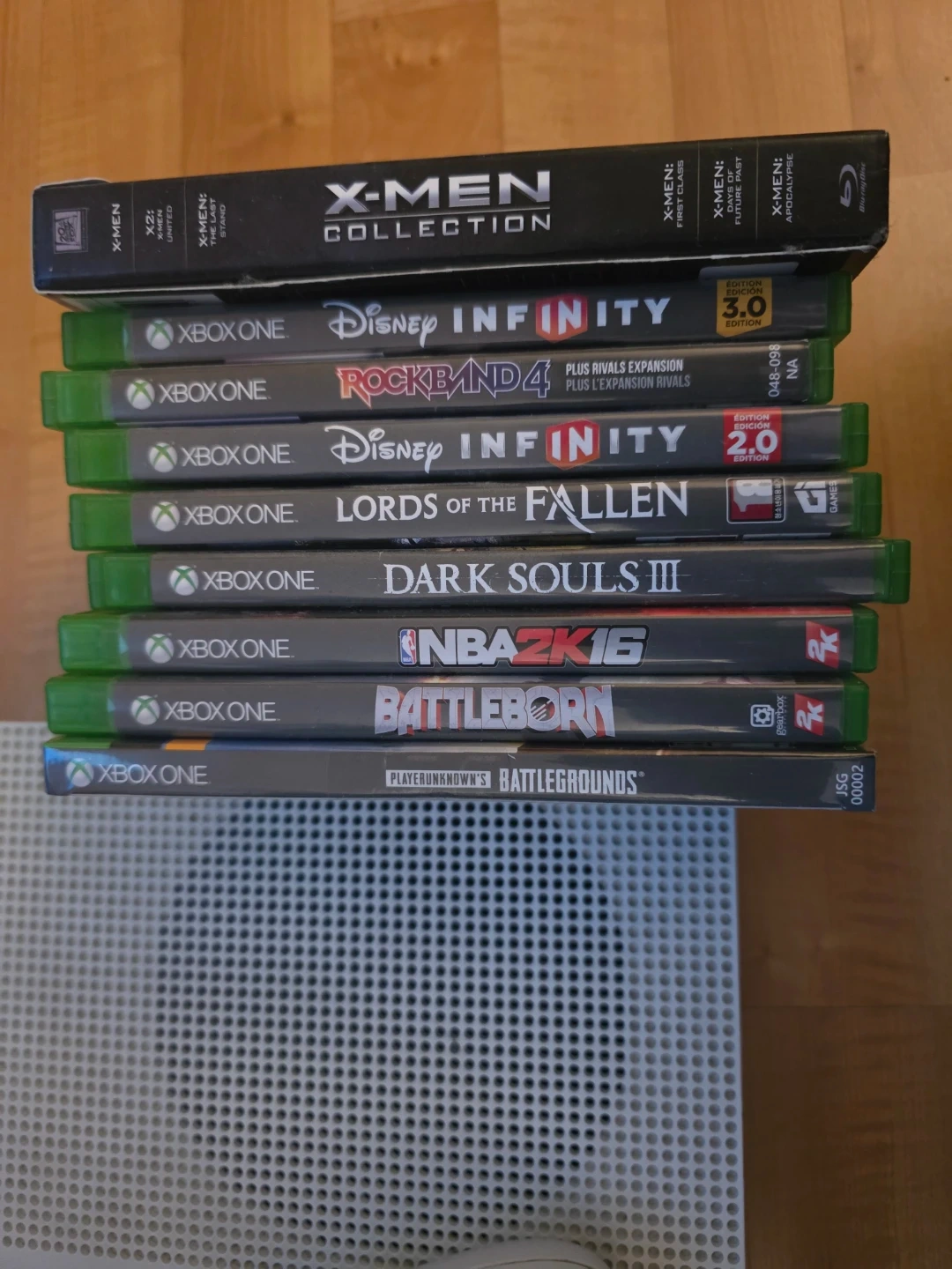 Selling a bundle of Xbox One console and games and an X-Men movie collection. Titles include: