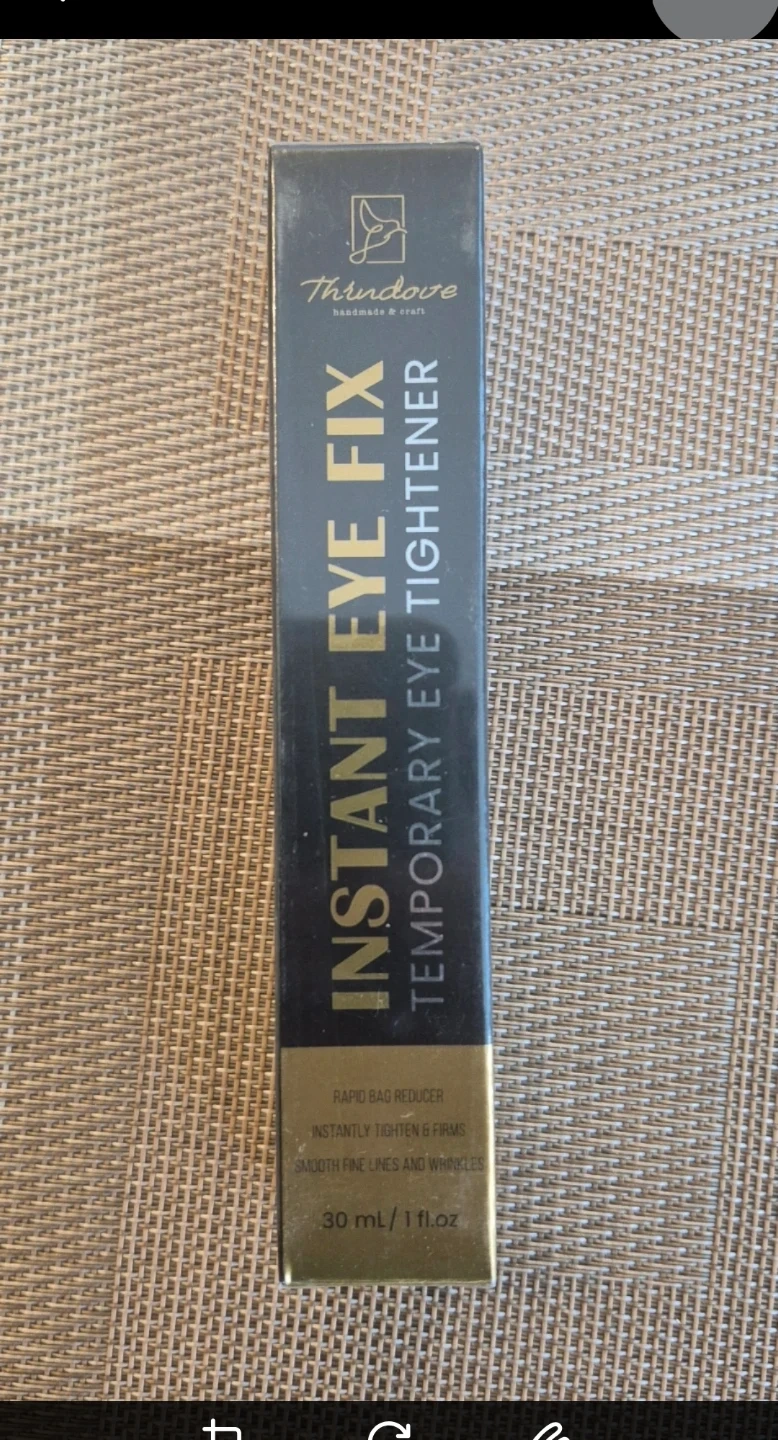 I'm selling a Thrudove Instant Eye Fix Temporary Eye Tightener. It's designed to help reduce rapid bags, instantly tighten and firm, and smooth fine lines and wrinkles. It comes in a 30 ml / 1 fl.oz size