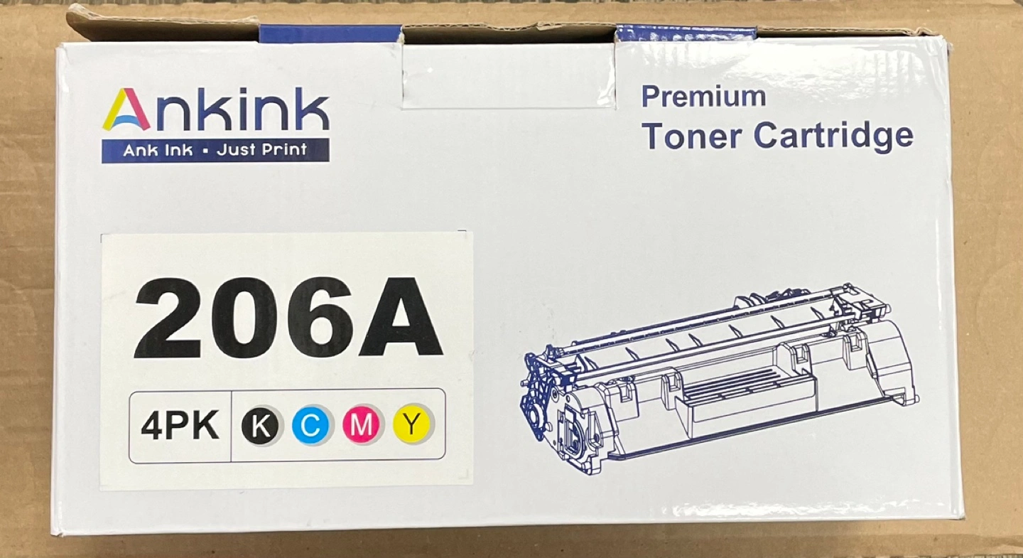 Selling a brand new, unopened 4-pack of Ankink 206A premium toner cartridges. This set includes black, cyan, magenta, and yellow cartridges. Perfect for your printing needs!
