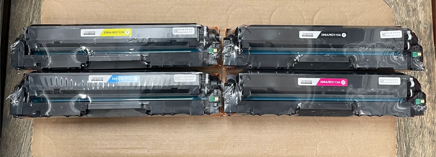 Selling a brand new, unopened 4-pack of Ankink 206A premium toner cartridges. This set includes black, cyan, magenta, and yellow cartridges. Perfect for your printing needs!