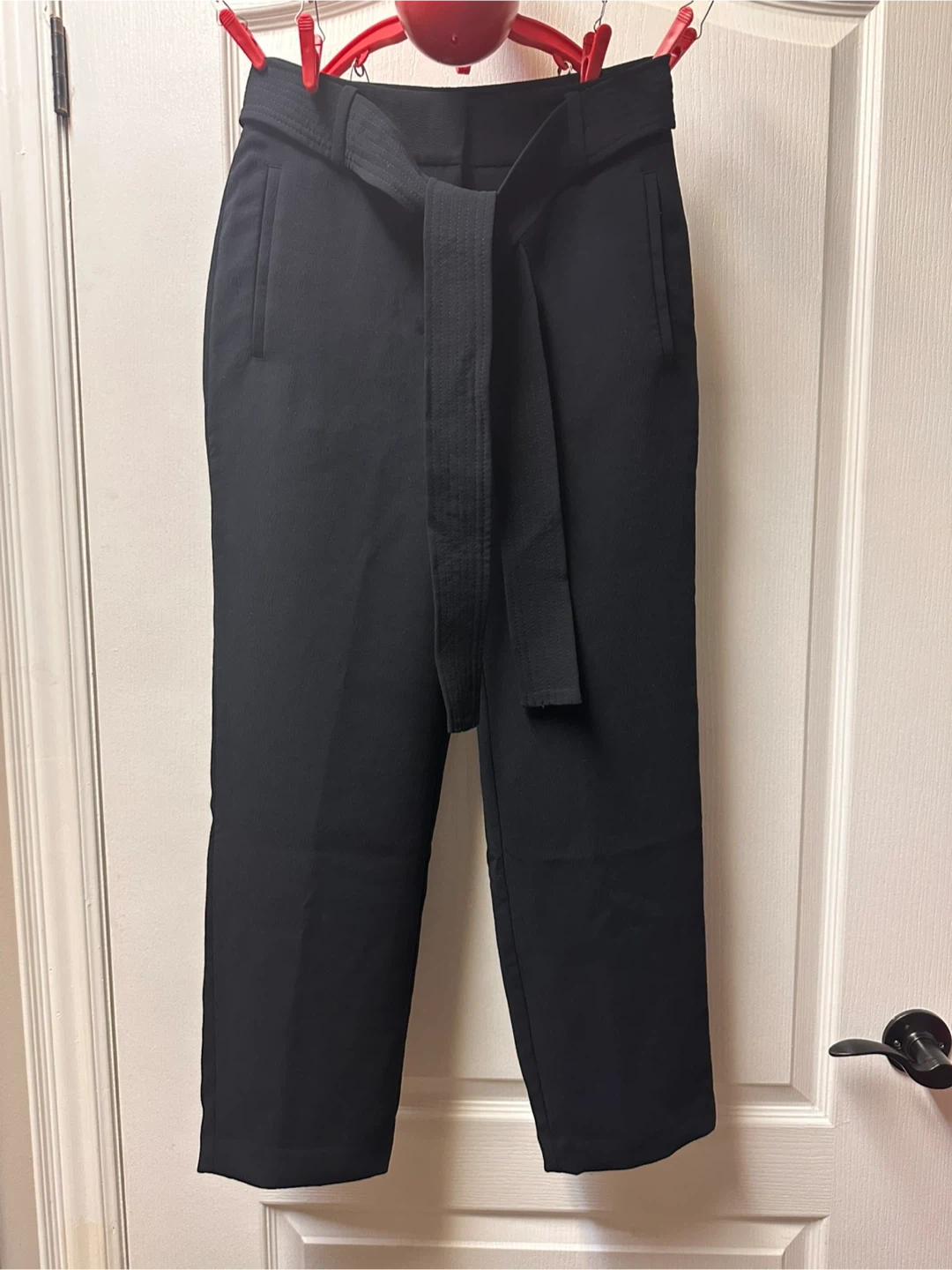 Selling a pair of Wilfred black belted trousers in size 0. They are in great condition and ready for a new owner! These trousers are perfect for a professional or casual look.