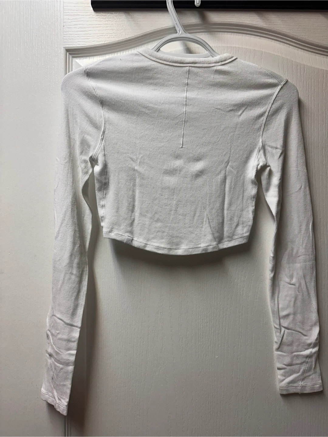 Selling a lululemon cute white long sleeve crop top! It's in great condition and would look great with jeans or leggings. It's a simple and stylish piece to add to your wardrobe
