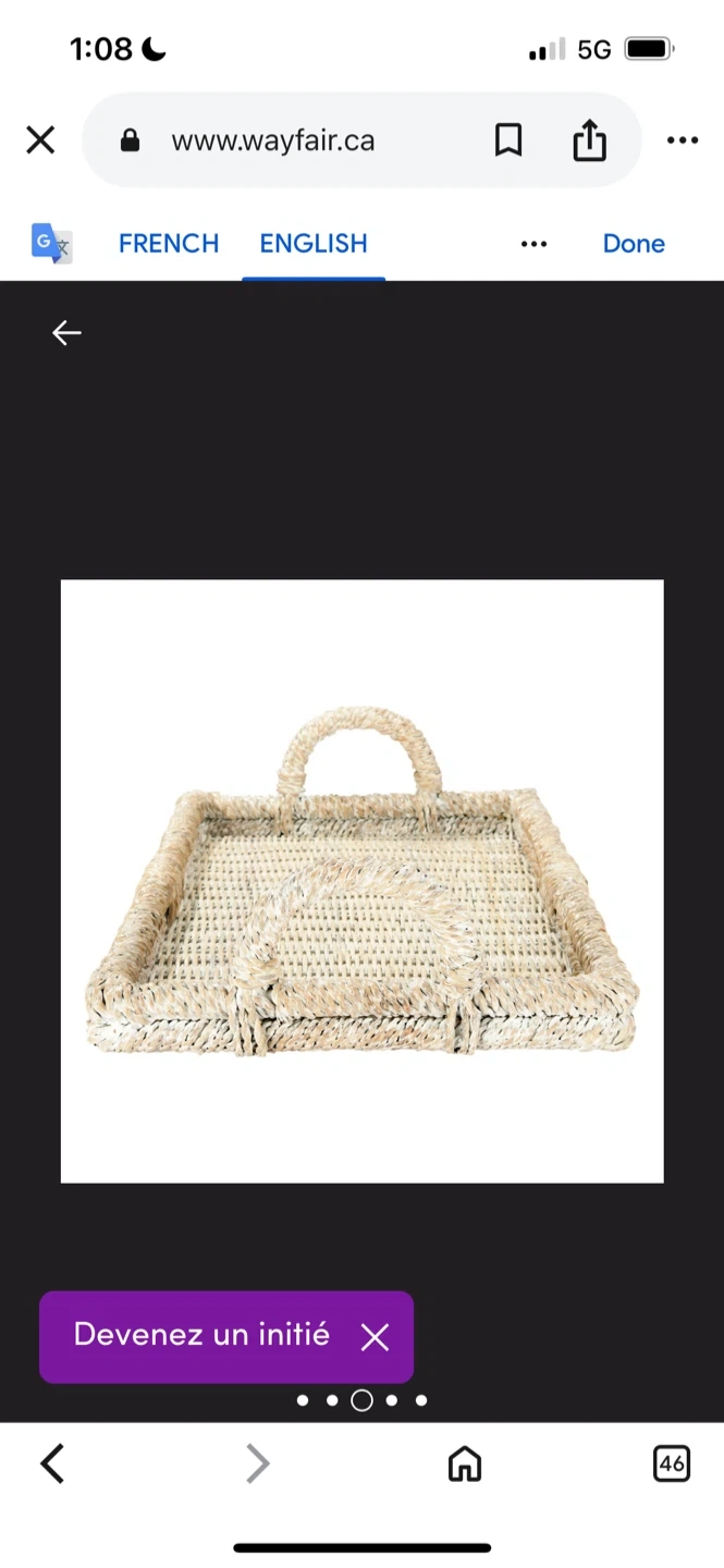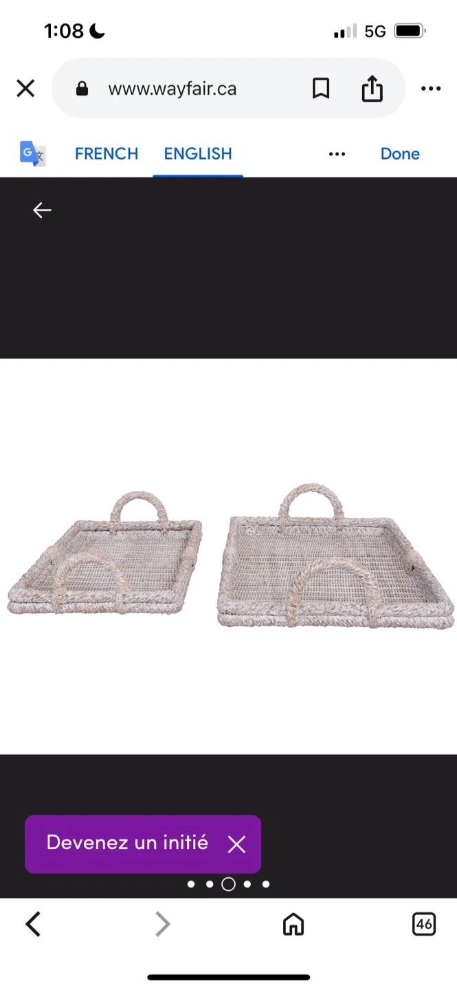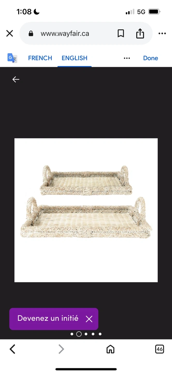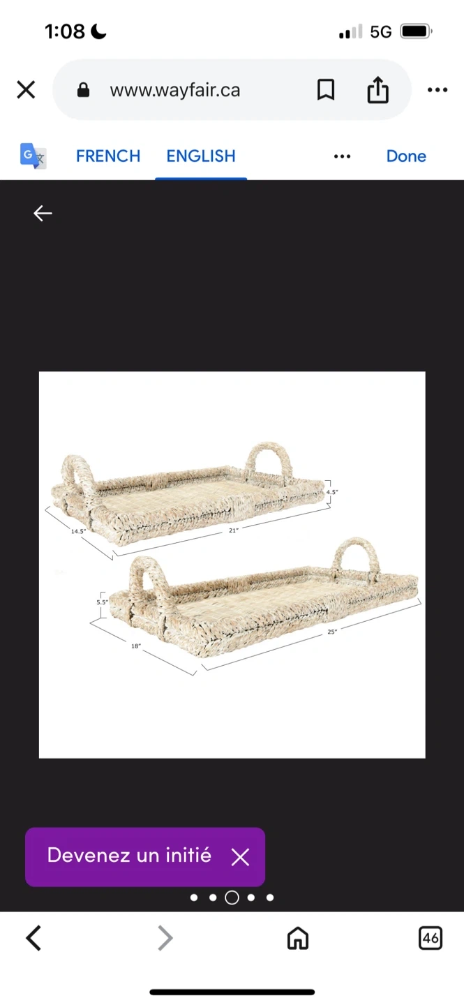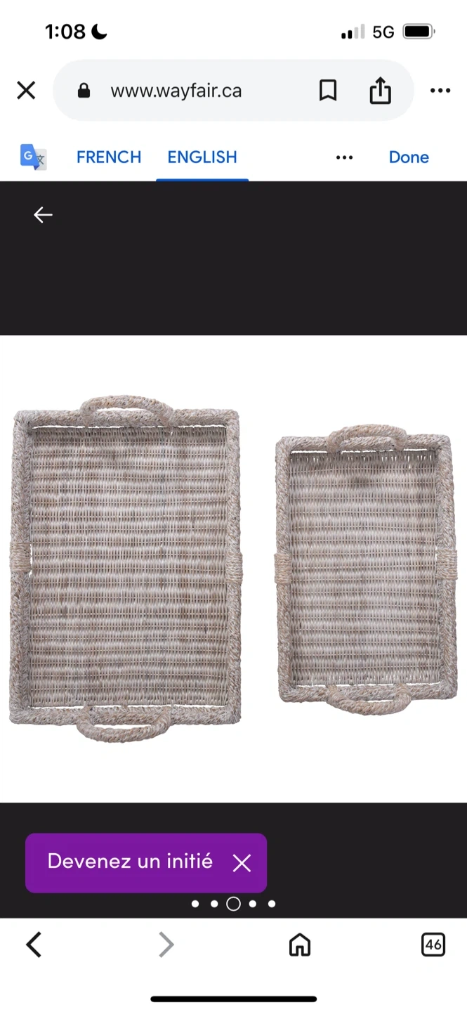 Selling a set of two rattan serving trays from Wayfair! They're perfect for adding a touch of natural texture to your home decor. The trays have a lovely woven design and sturdy handles. The larger tray is about 25 inches long and the smaller one is about 21 inches long. They're in great condition!