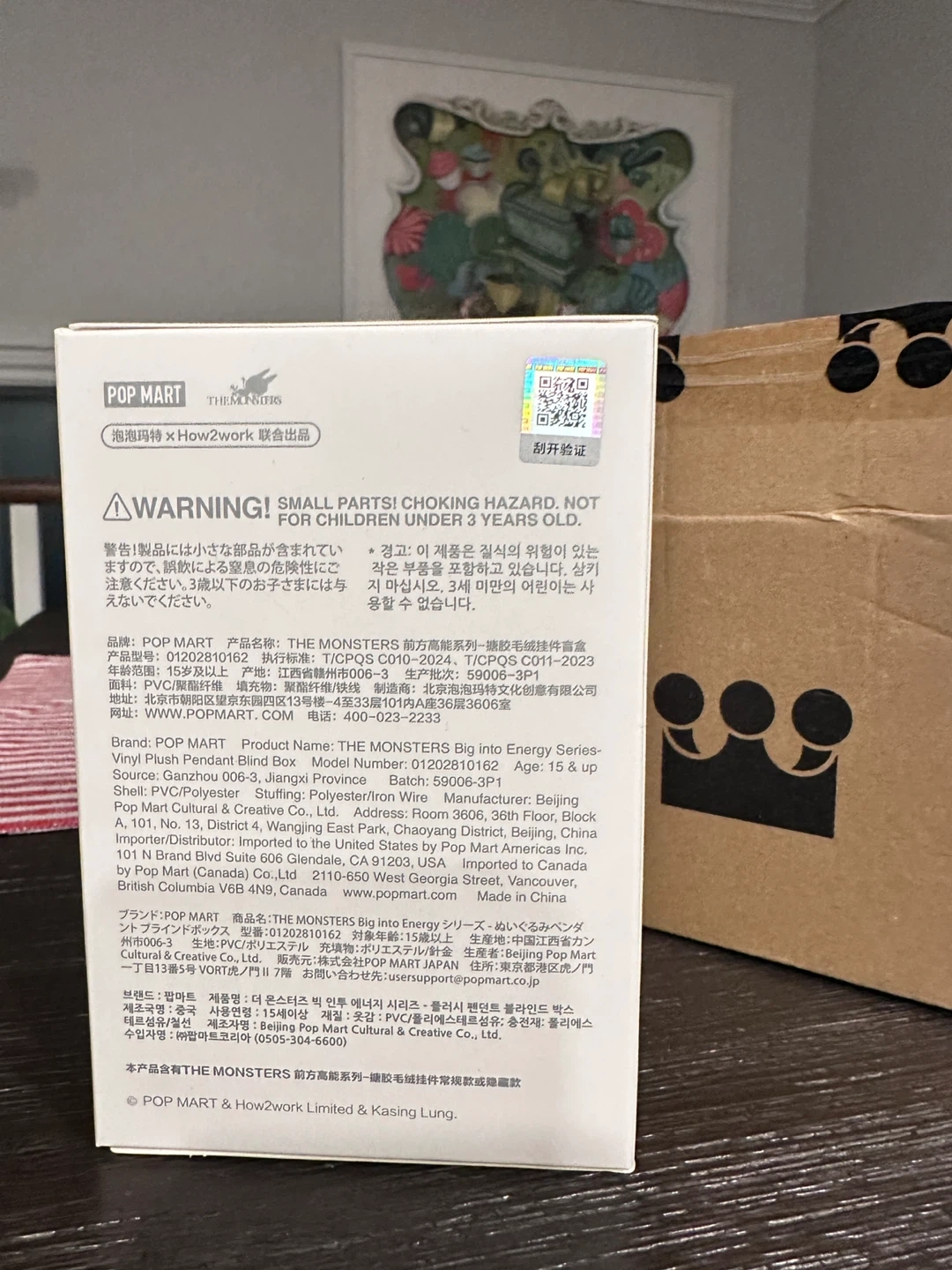 QR code on side of box and on Labubu’s tag will scan to prove 100% authenticity
