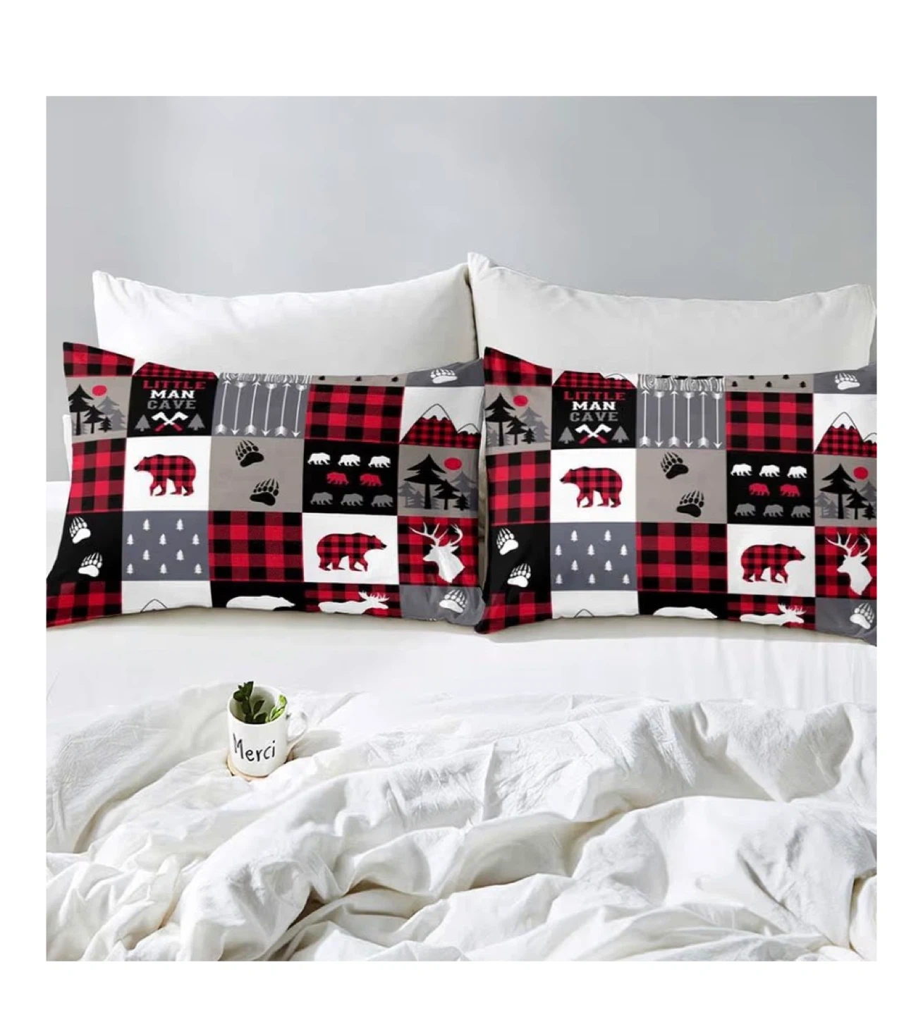 I'm selling a LUVVIVHOME 3PCS Black Red Plaid Duvet Cover Queen Bedding Set. It includes 1 duvet cover and 2 pillowcases. It's without a comforter and has corner ties and a zipper closure. The material is soft & breathable brushed microfiber.