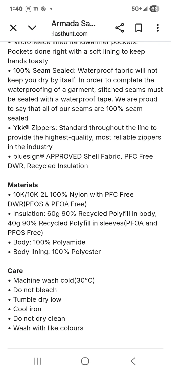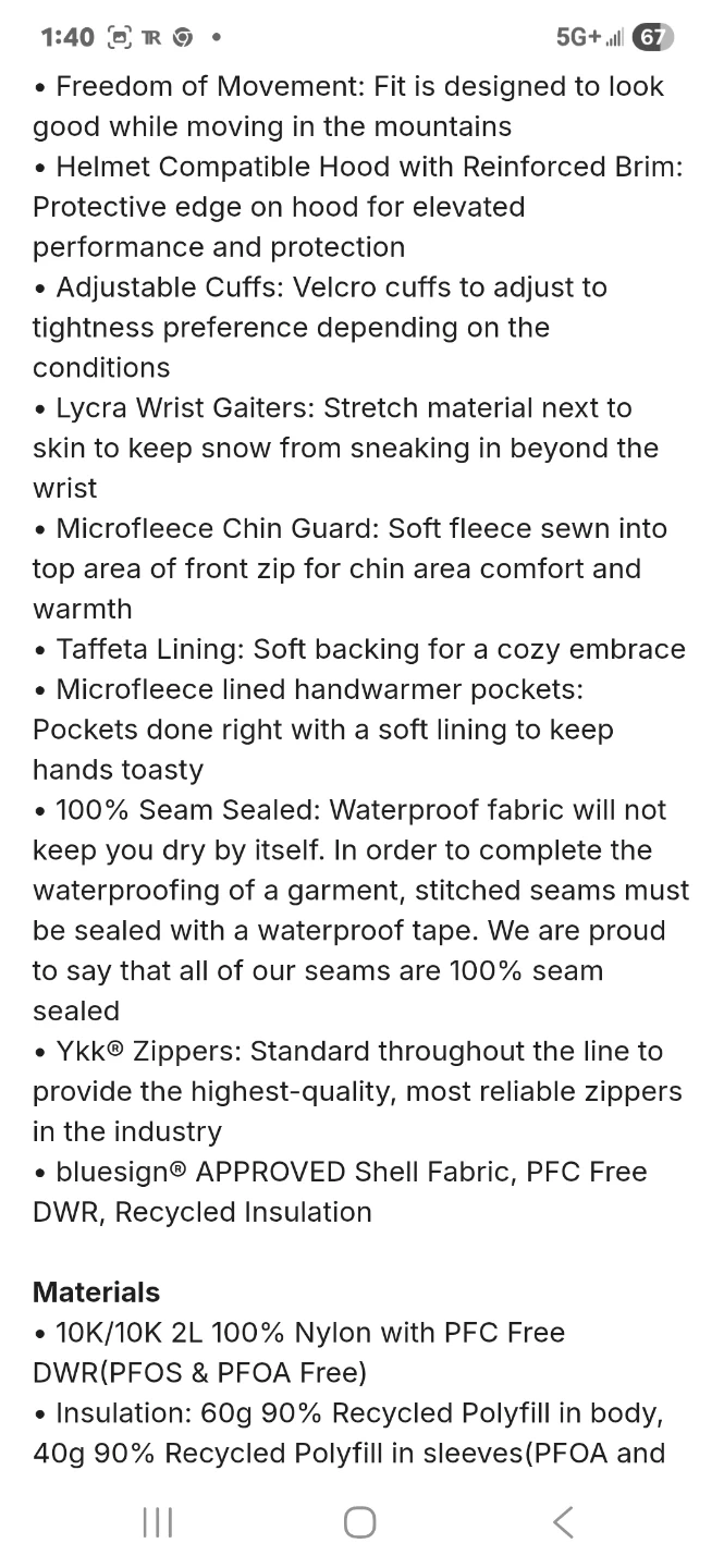 This Armada Sarin jacket is a hoodless, insulated jacket with a boxy fit. It's waterproof and breathable, featuring 10K/10K 2L 100% Nylon with PFC Free DWR. The insulation is 60g 90% Recycled Polyfill in the body and 40g 90% Recycled Polyfill in the sleeves. It also has YKK zippers and microfleece lined handwarmer pockets to keep your hands toasty!