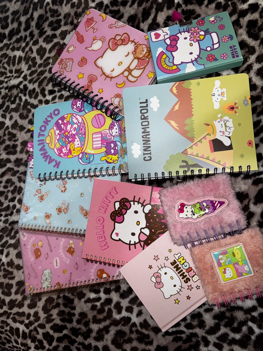 Selling a cute bundle of Sanrio stationery items featuring Hello Kitty and Friends! Includes sticker books, notebooks, and coloring books. Perfect for any Sanrio fan!