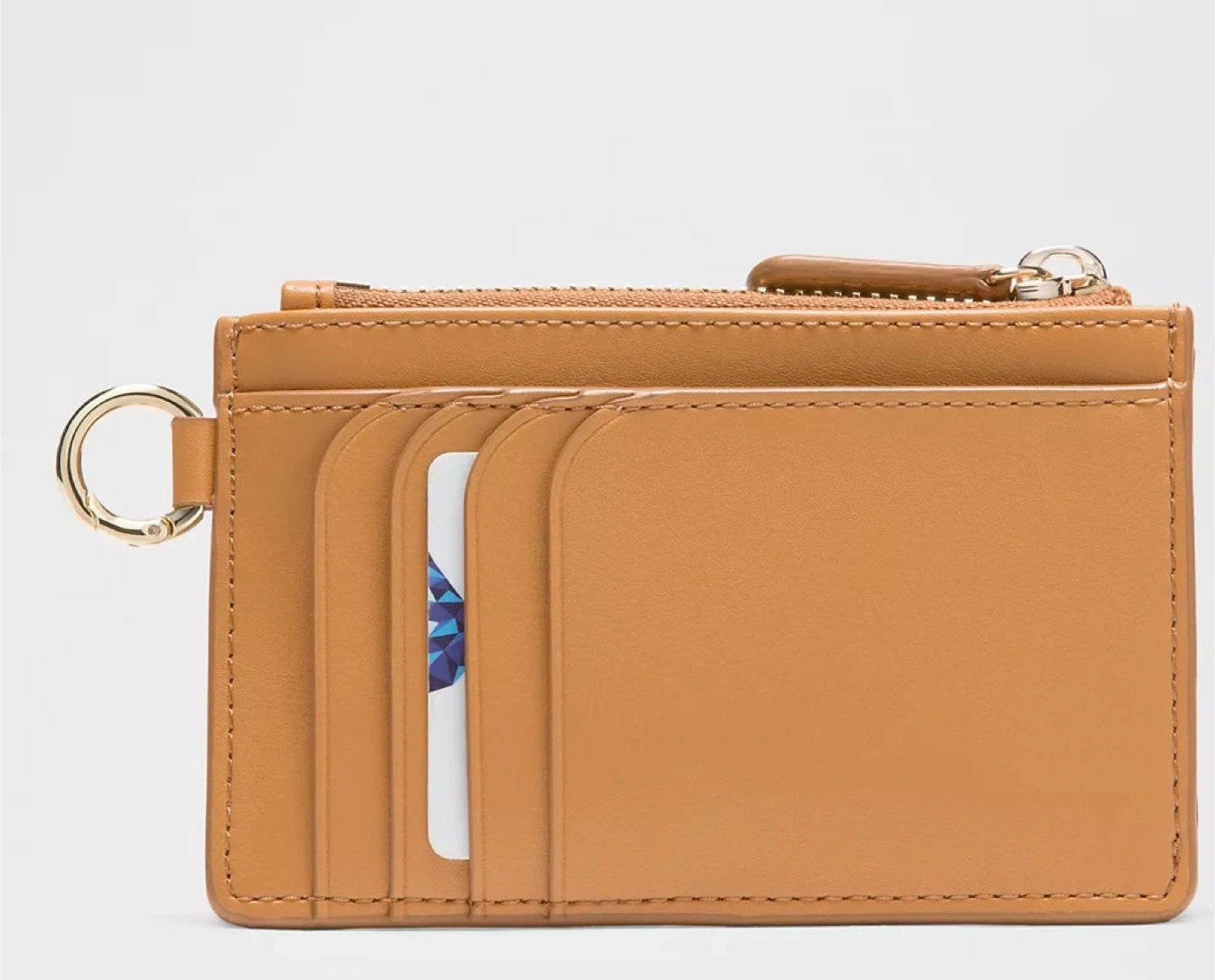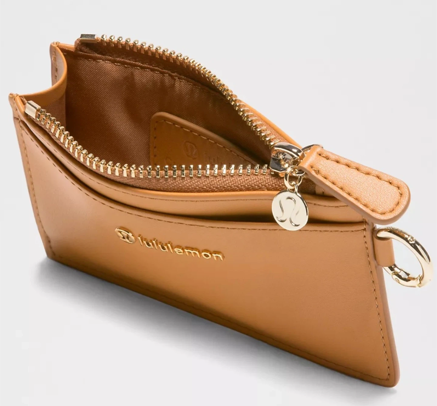 Selling a Lululemon card case in a beautiful gold colour! It's perfect for carrying your essential cards and cash. It features a zippered compartment and multiple card slots to keep everything organized. Great for on the go!