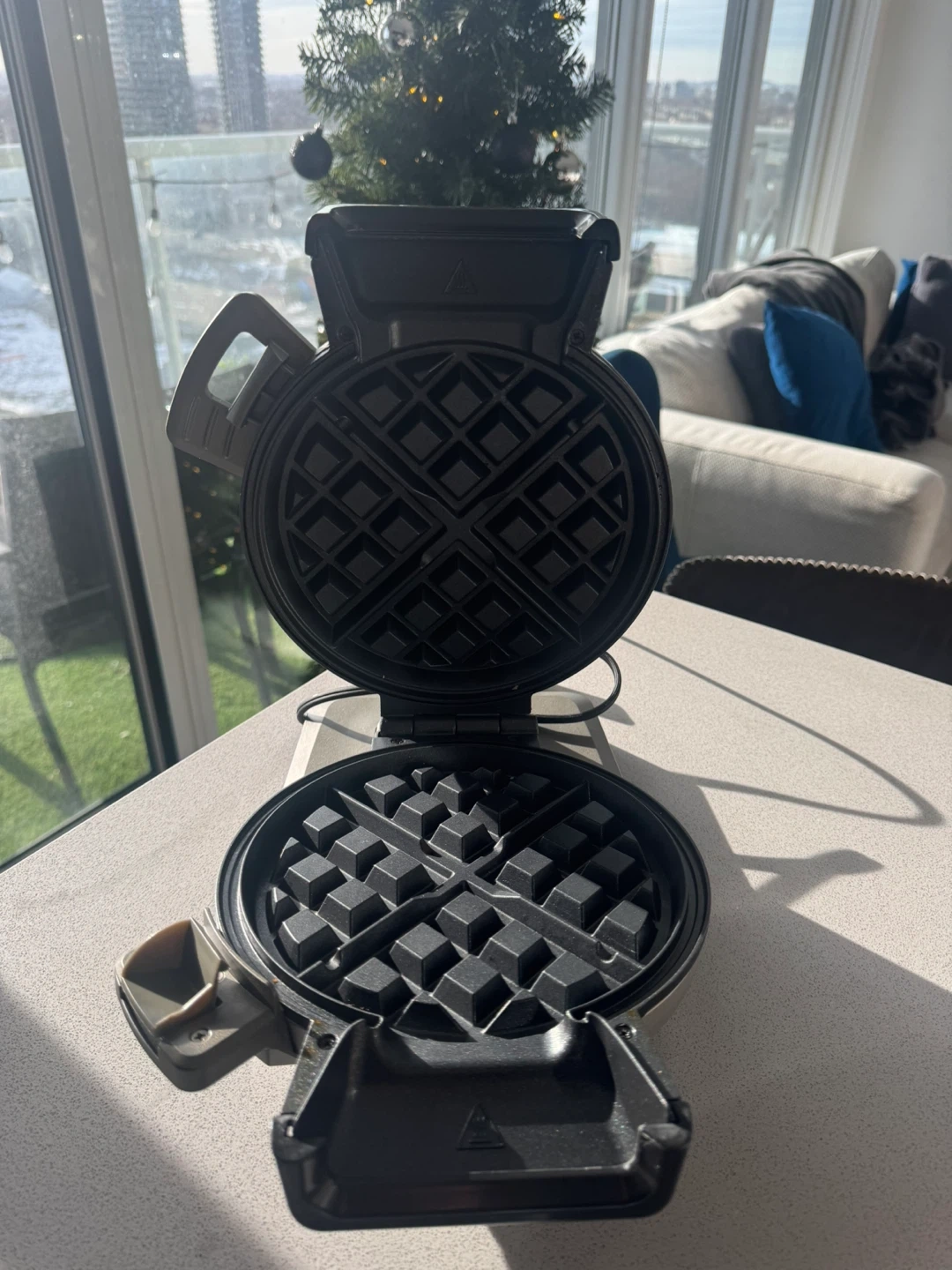 Selling a Cuisinart vertical waffle maker, full size. It's in great condition and only used once. It's a great addition to any kitchen.
