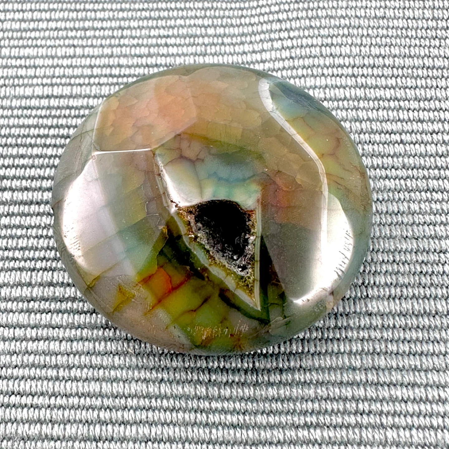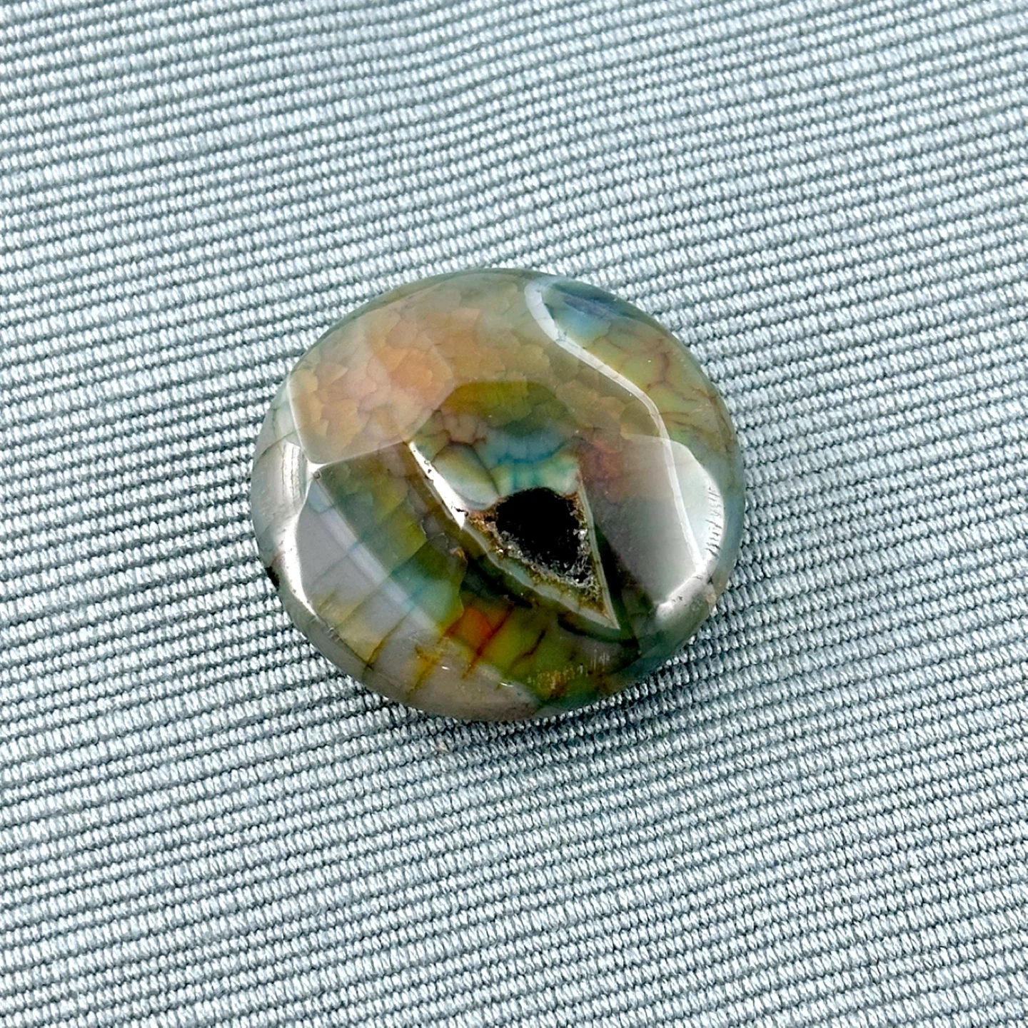 New faceted geode pendant (greens) for jewelry making— drilled to become a pendant. Approx 1-1/4” diameter