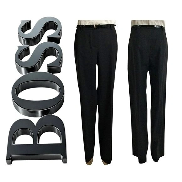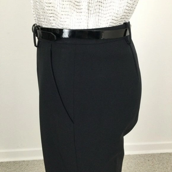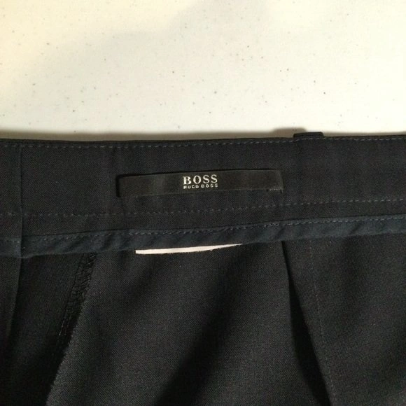 Location NW Edmonton 120 St & 173A Avenue. Check Measurements. HUGO BOSS Black Slacks Front Zip, Narrow Waist Band, 2 Front Pockets, Straight Legs are in great condition. Belt is shown for illustration. The fabric and care tags have been snipped out of this garment.