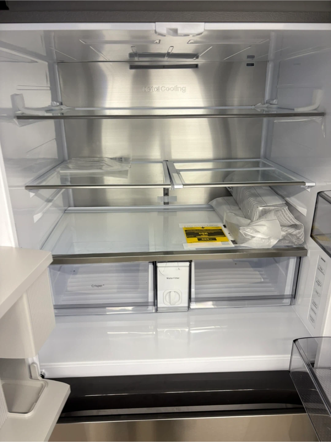Selling a BRAND NEW Samsung French door refrigerator in stainless steel. It features metal cooling and a beverage center. Great for any kitchen!