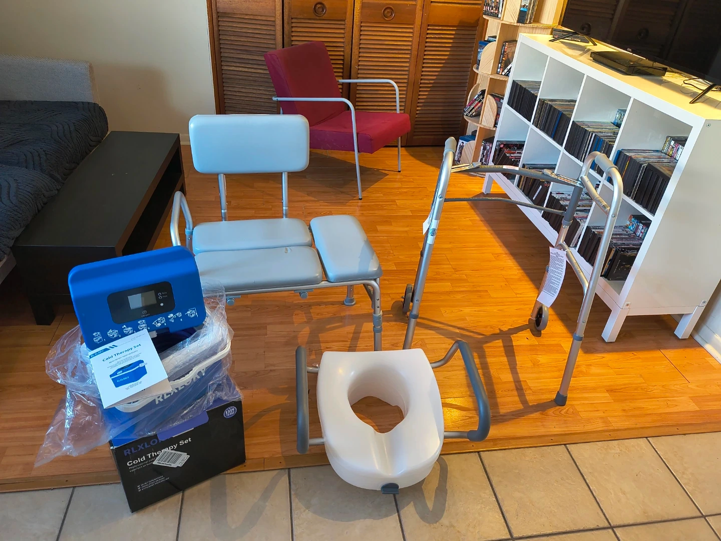 Selling a Rexloly Cold Therapy Set, still in its original packaging! Also included are bath safety items, including a bath chair, toilet seat riser, and walker