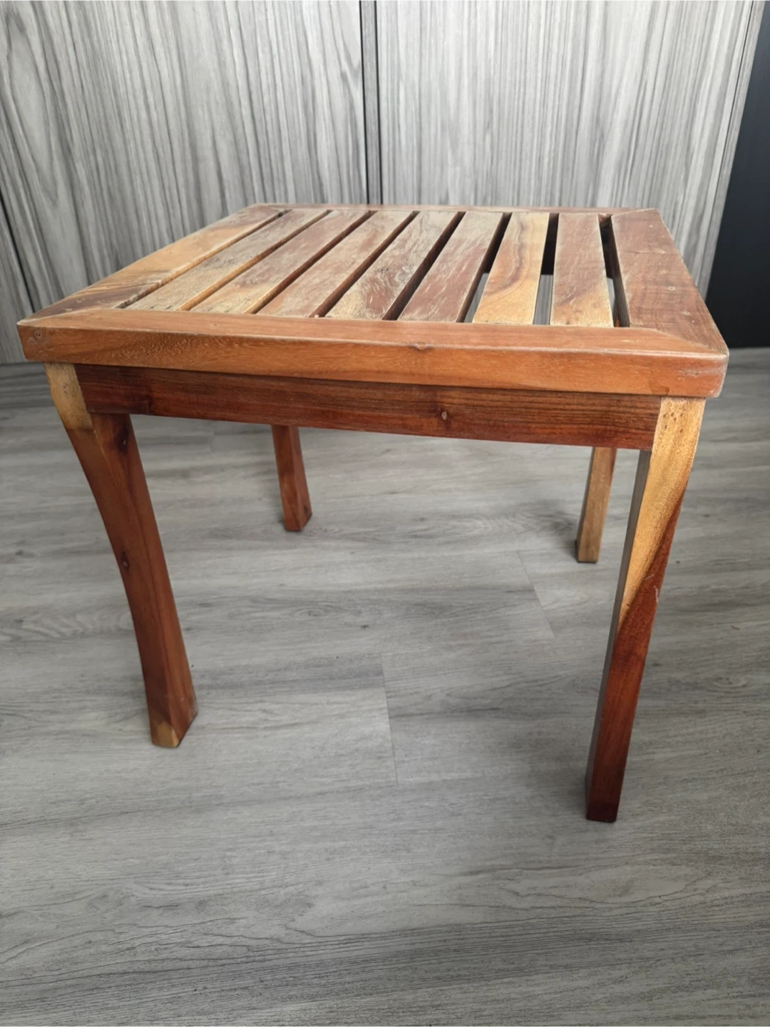 Selling a wooden side table. It is made of solid wood. Varnish at the top is in ok condition, but it is in a perfectly working condition.