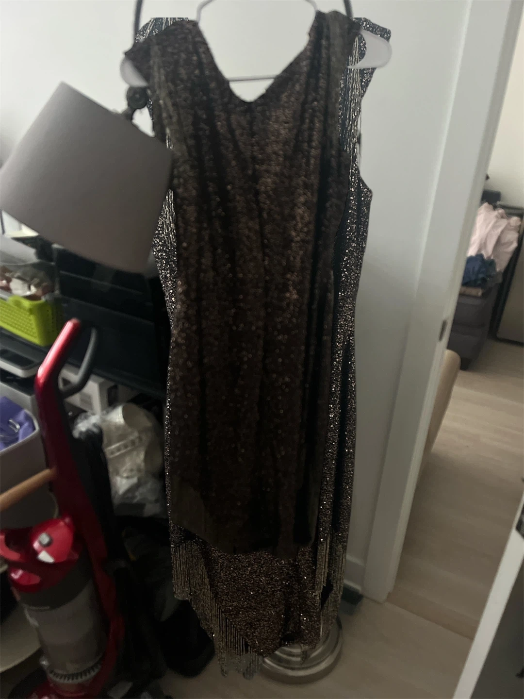 Selling a sparkly dress with a fringe. It's in good condition, perfect for a night out! ✔ Approx. size: L (fits M-L depending on body type)