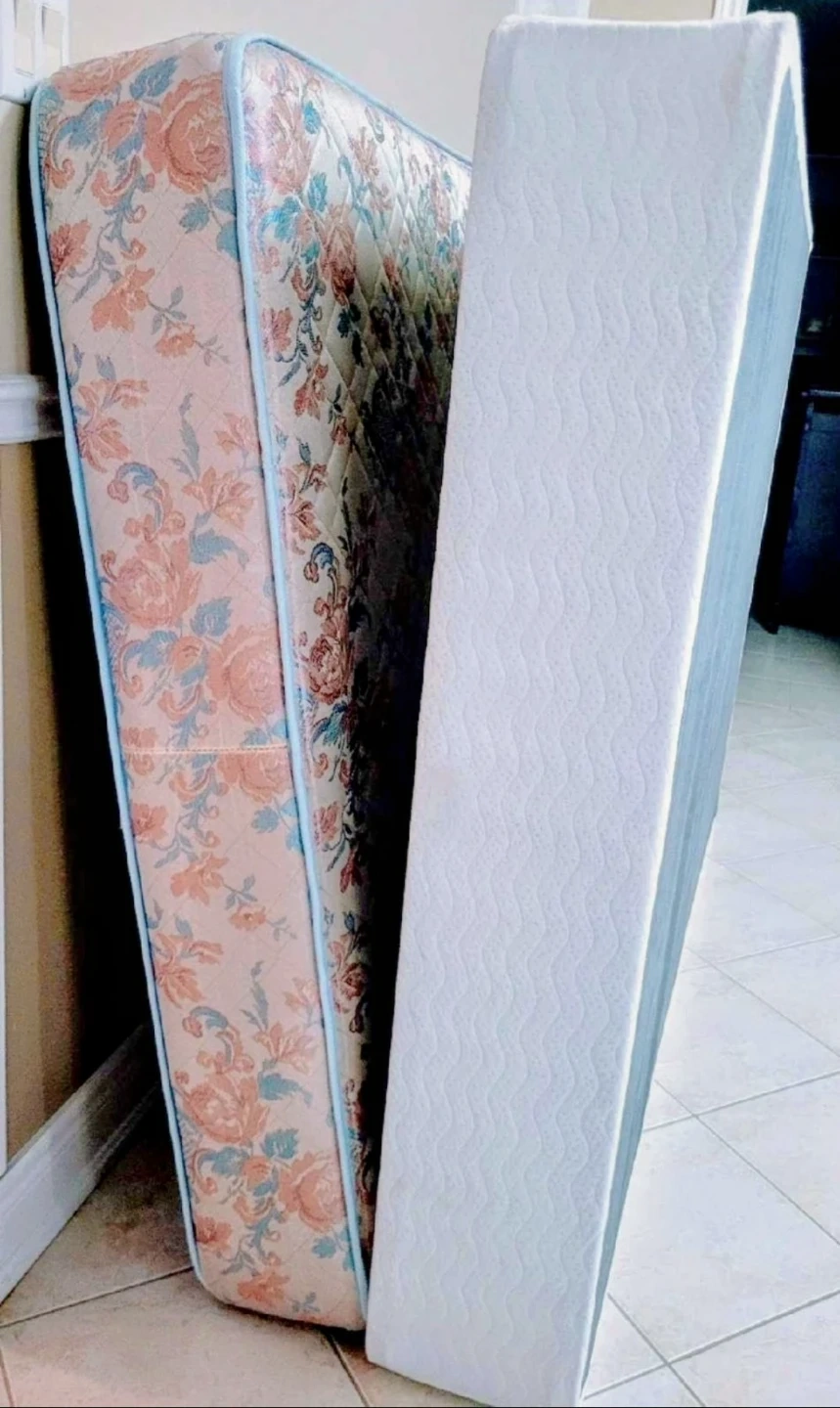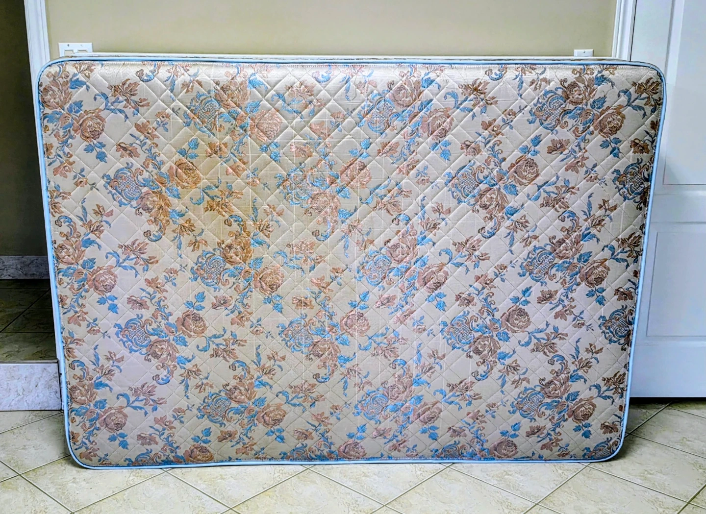 Double Mattress with a floral pattern, perfect for a spare bedroom or guest room! It's in good condition and ready for a new home. Comes with a box mattress as well!