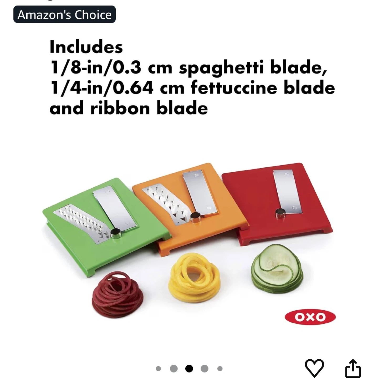 I'm selling an OXO Good Grips Spiralizer. It quickly creates noodles from fruits and vegetables. It comes with 3 stainless steel blades. Has suction cups to secure to counter. It's in great condition and comes with the box. 2 blades are brand new, only been used once or twice. Small crack on storage case for blades (see picture), doesn’t impact use. Sells for $60+ normally. Pick up Haysboro SW.