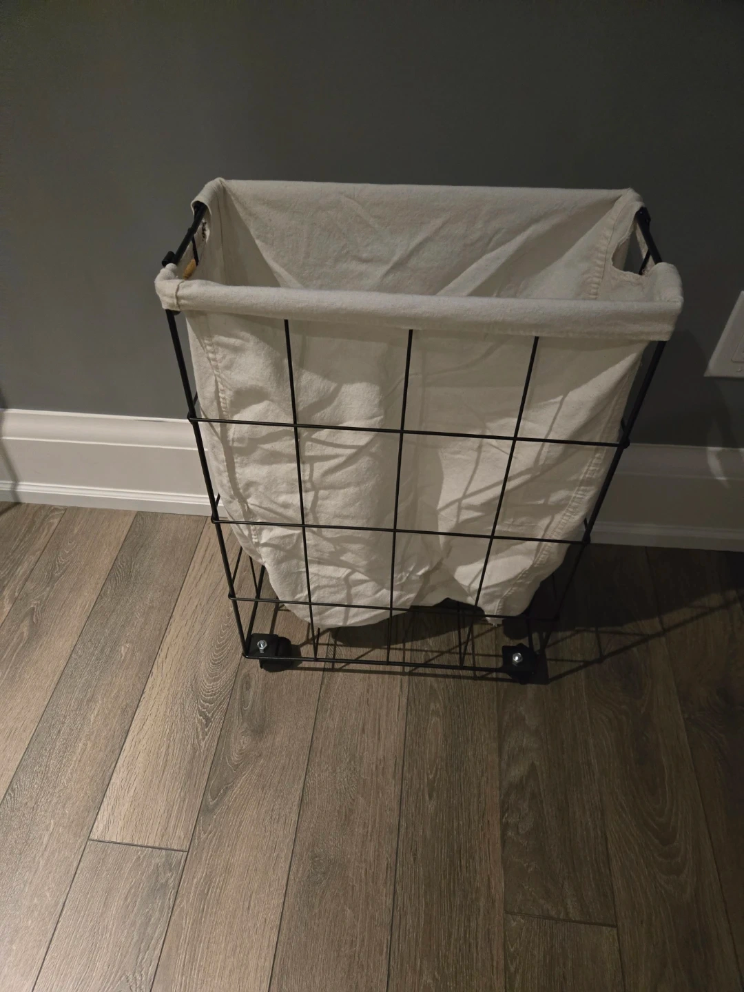 Laundry basket with a removable cloth liner and wheels for easy moving around. Pick up in woodbridge, weston road and rutherford. Cash only