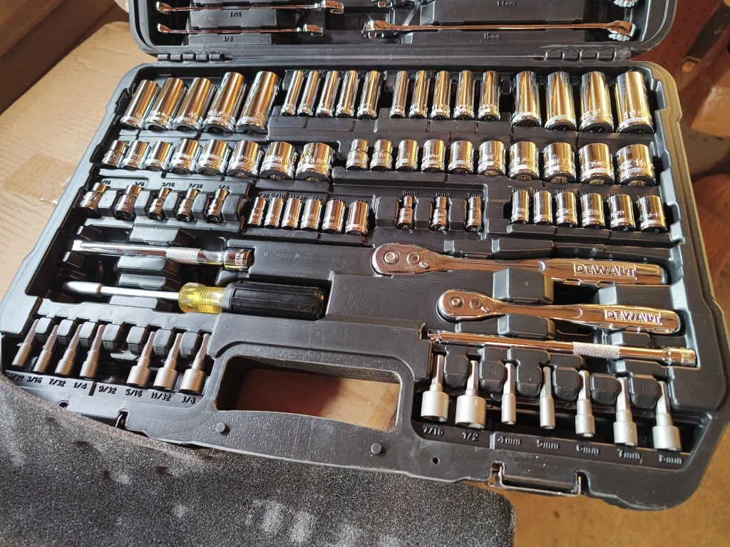 Selling a BRAND NEW DeWalt mechanics tool set. It comes with a variety of tools, all neatly organized in a black case. Great for any DIY projects or professional work!