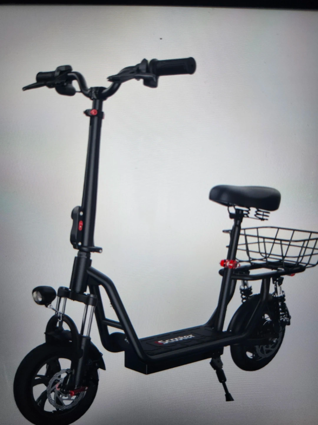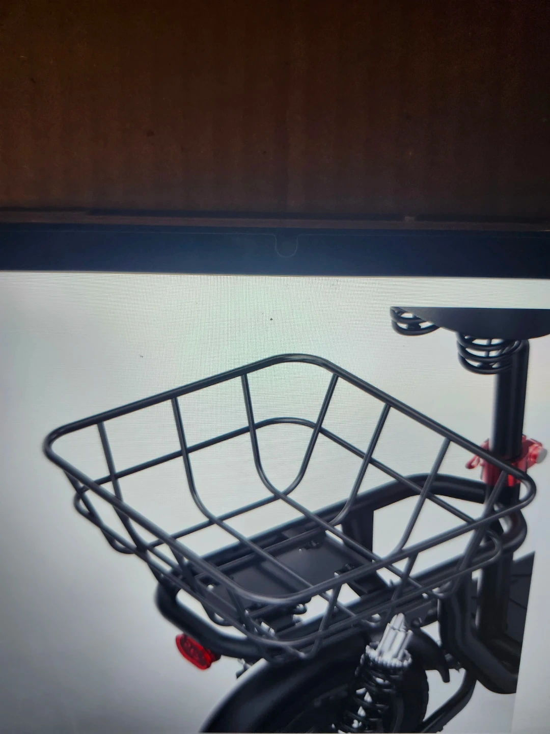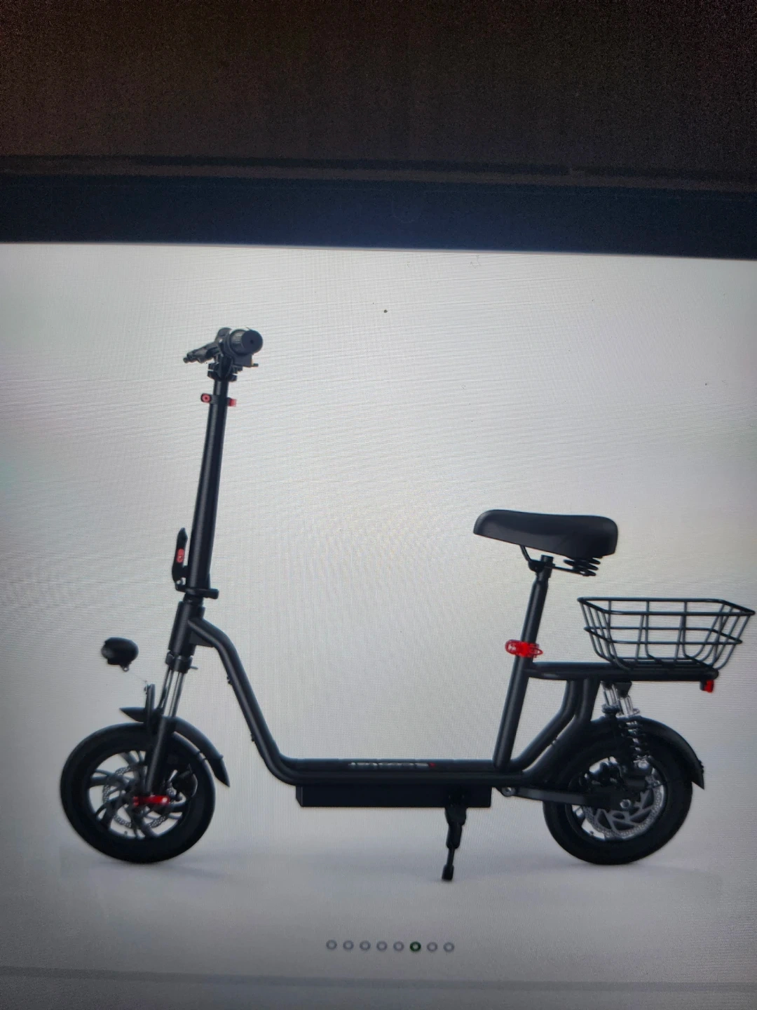 Comes with a front carry pouch, helmet, multicolor light package underneath that lights up the road. Rear steel basket.