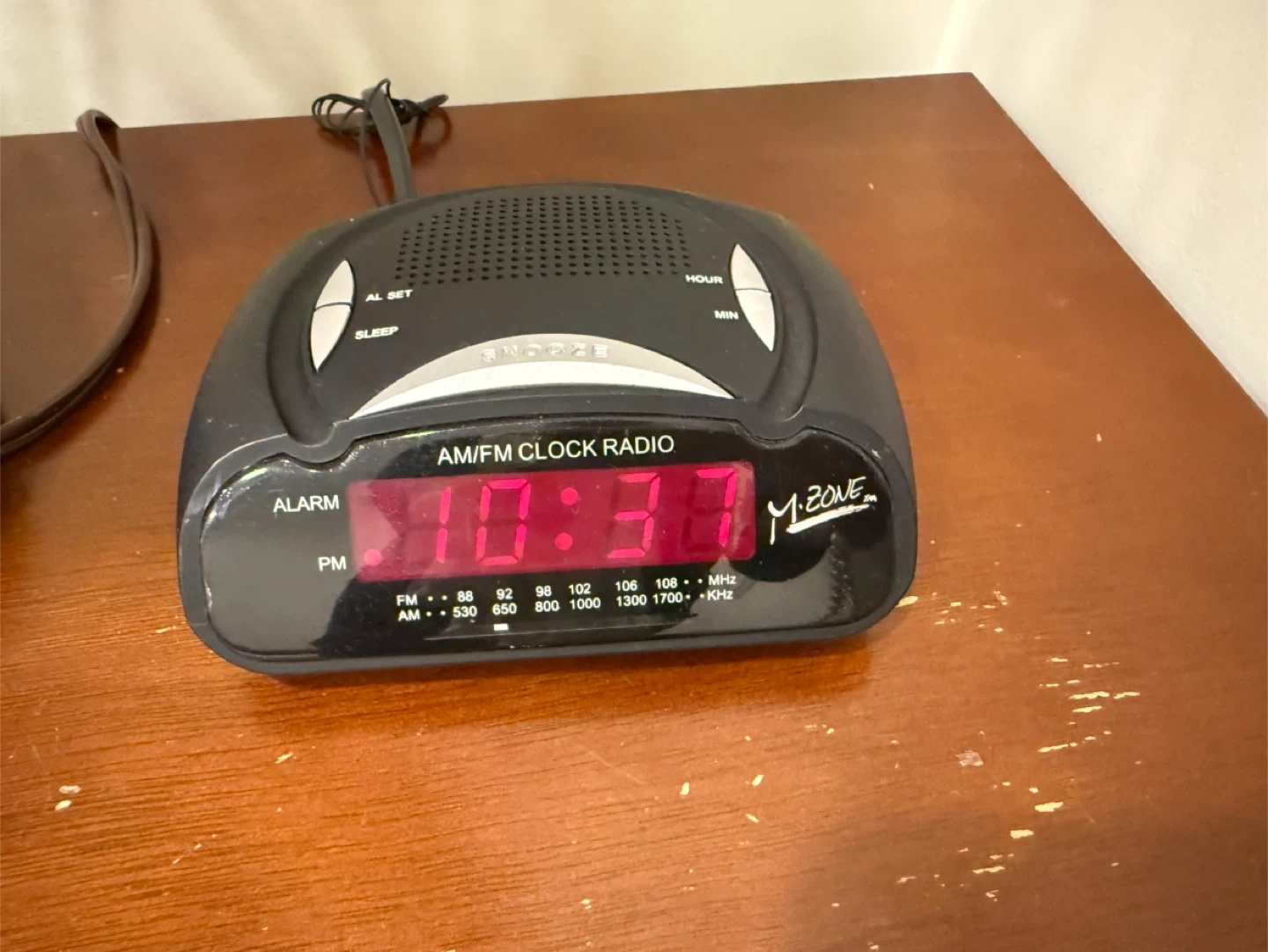 Selling a used M-Zone AM/FM clock radio. It has an alarm and a snooze button. Perfect for a bedside table!