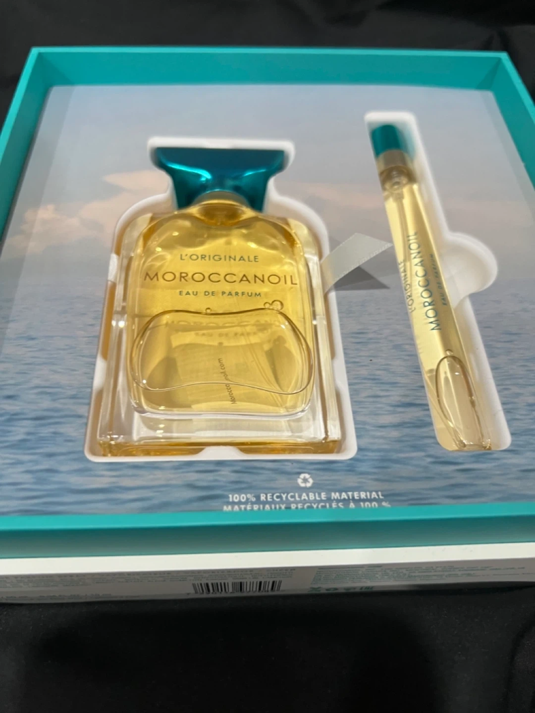 Brand New Selling a Moroccanoil Eau de Parfum set. It includes the original Eau de Parfum and a travel-size version. The packaging is 100% recyclable material, which is great! Perfect for someone who loves the Moroccanoil scent