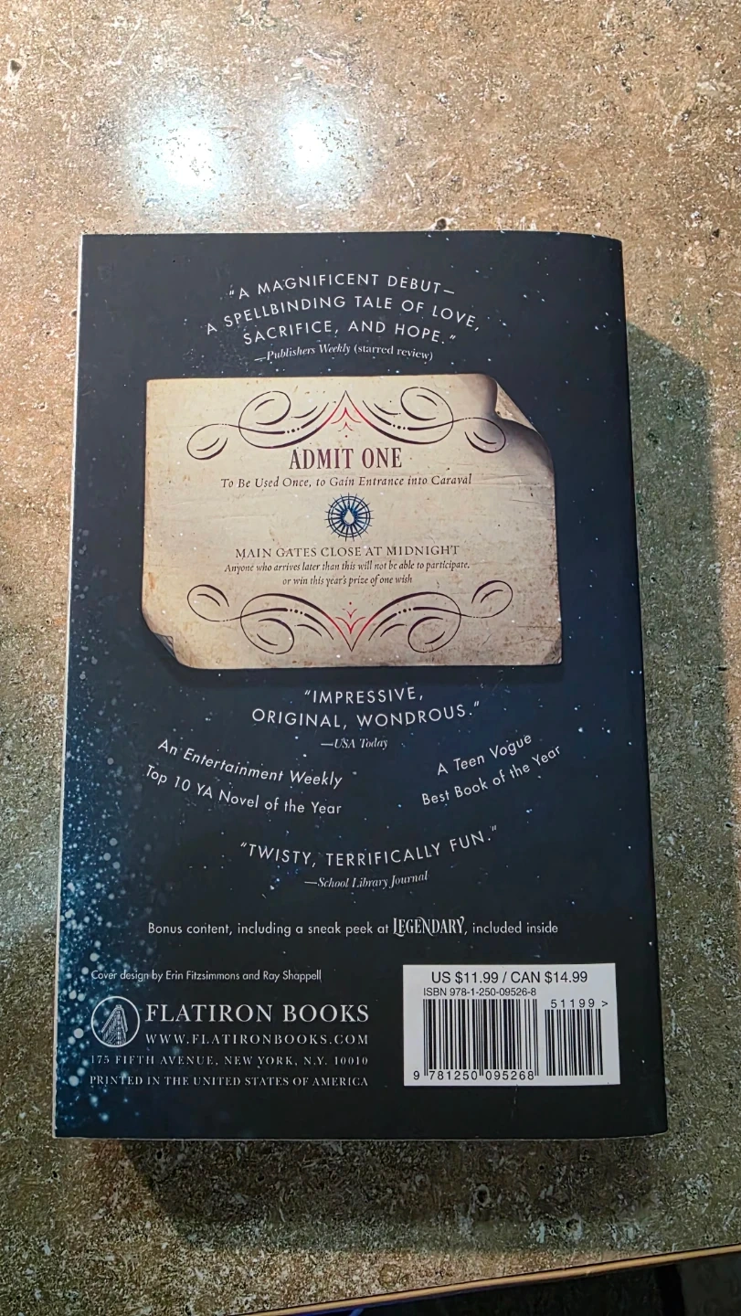 Selling a copy of Caraval by Stephanie Garber! This is a New York Times Bestseller and the first book in the Caraval series. It's a spellbinding tale of love, sacrifice, and hope. Includes a sneak peek at Legendary! Brand new copy. I listened to the audiobook instead