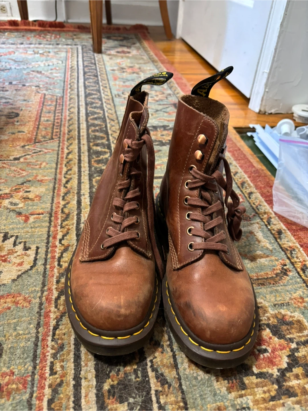 Buy & SellDr. Martens Pascal Boots - Brown, US L (US L 8 / EU 39)Dr. Martens Pascal Boots - Brown, US L (US L 8 / EU 39)$70Selling a pair of Dr. Martens Pascal boots in a lovely brown color. They are a size US 8, which is an EU 39, gently used.SizeEU 39BrandDr. MartensWHERE TO MEETBrower parkView MapSELLERverifiedGabbyCrown Heights700 reviews0 chats·1 favorites·93 viewsSEND CHAT TO SELLERHi Gabby! I’m interested in your listing.Hi Gabby! I’m interested in your listing.Get the Karrot app to chatSign In to chat