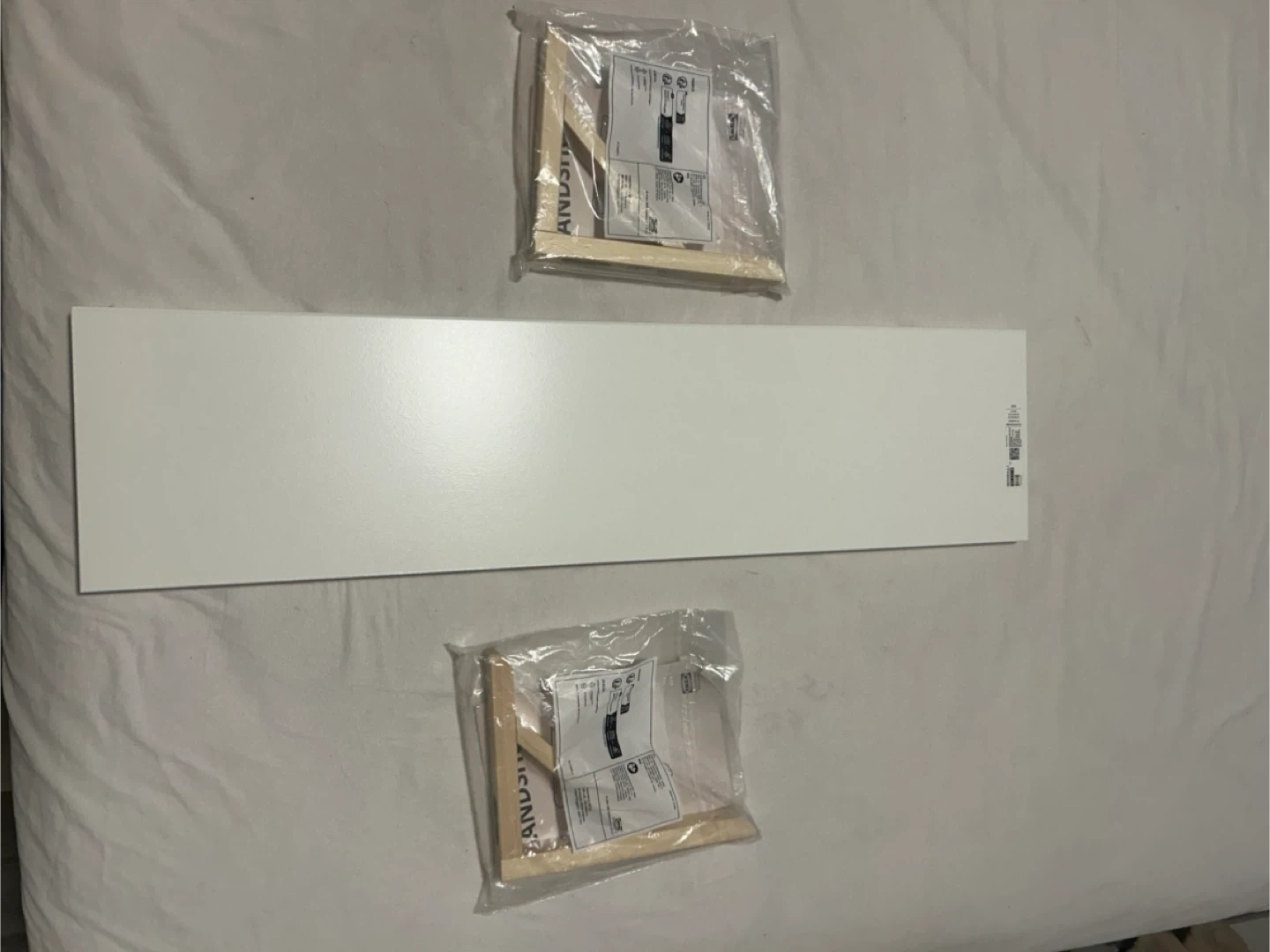 Selling a stylish IKEA wall shelf in white, complete with two SANDSHULT brackets. Perfect for bedrooms, living rooms, entryways, or small spaces that need extra storage.