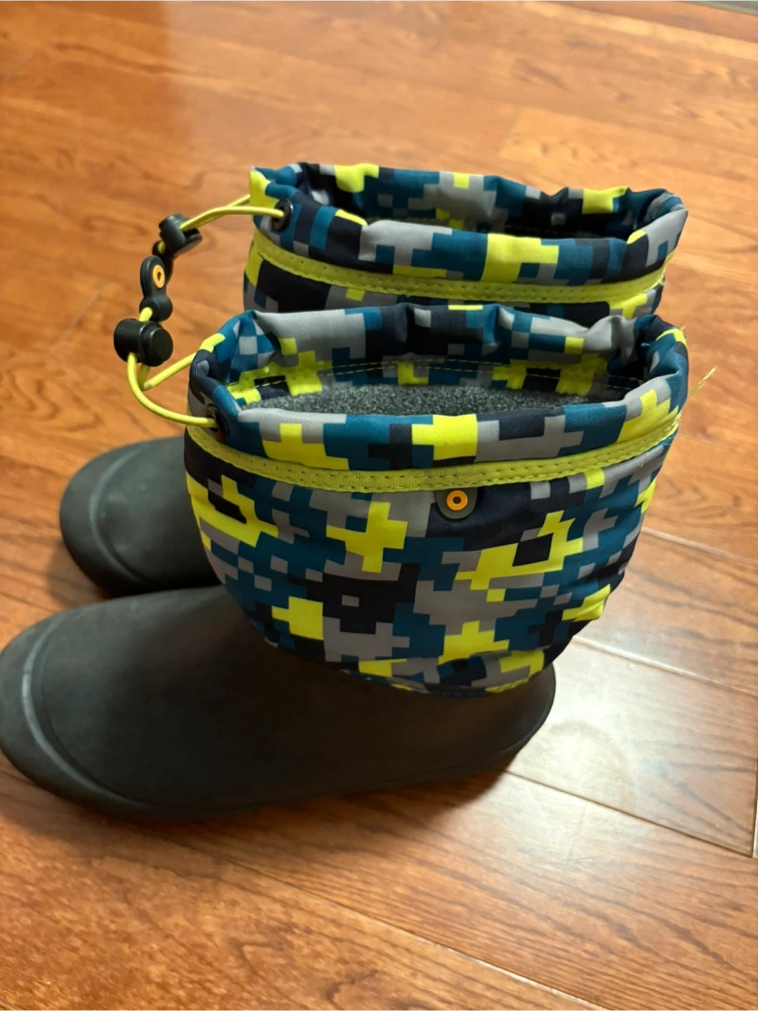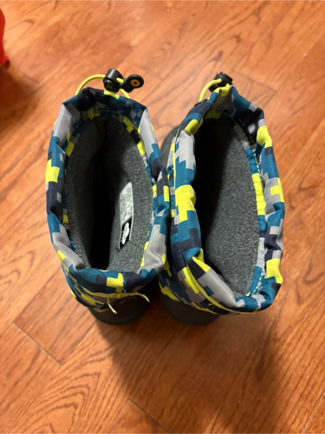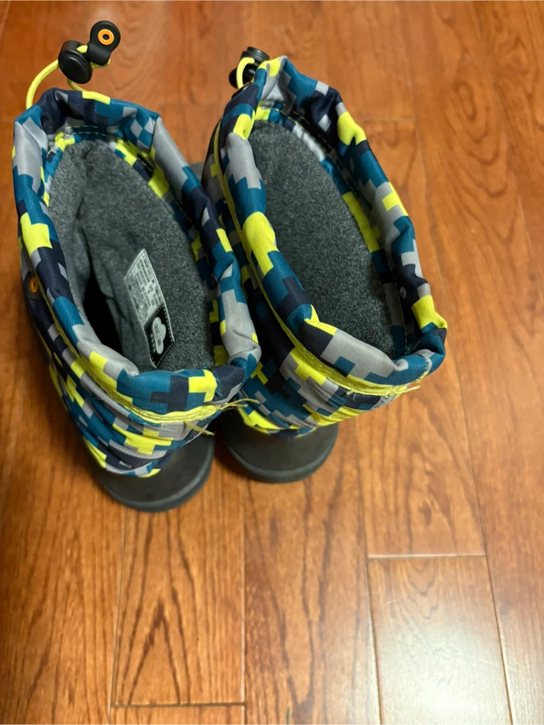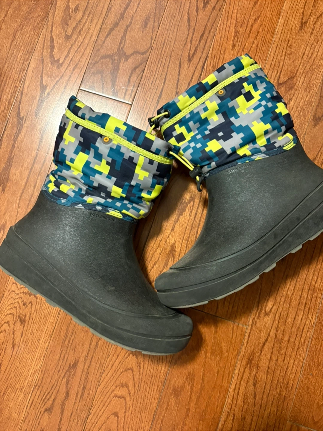 These Bogs kids snow boots are in great condition! They feature a fun, colourful pixelated pattern on the upper part of the boot. Perfect for keeping little feet warm and dry during the winter months. The size is US 6, Euro 39( youth ).