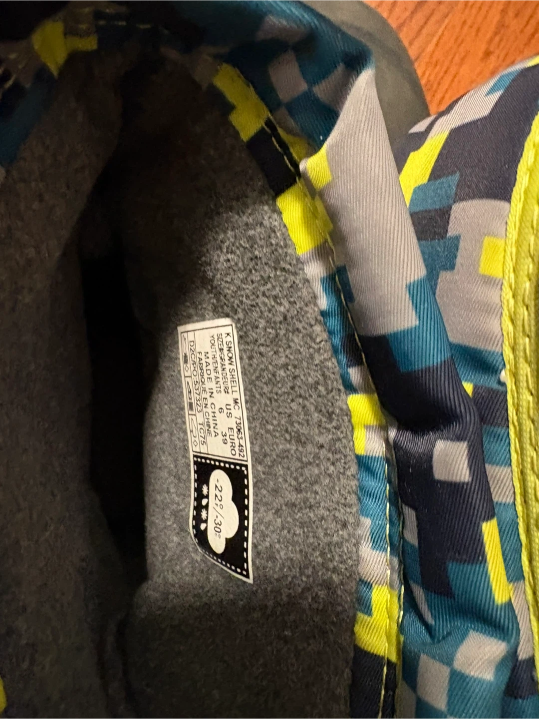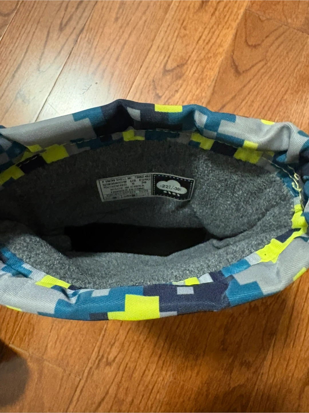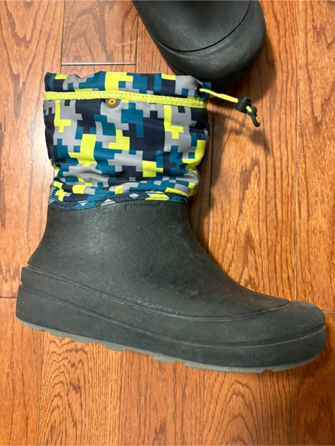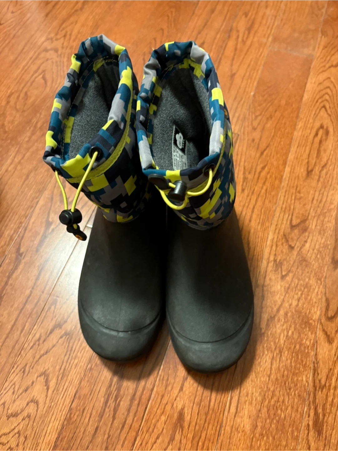 These Bogs kids snow boots are in great condition! They feature a fun, colourful pixelated pattern on the upper part of the boot. Perfect for keeping little feet warm and dry during the winter months. The size is US 6, Euro 39( youth ).