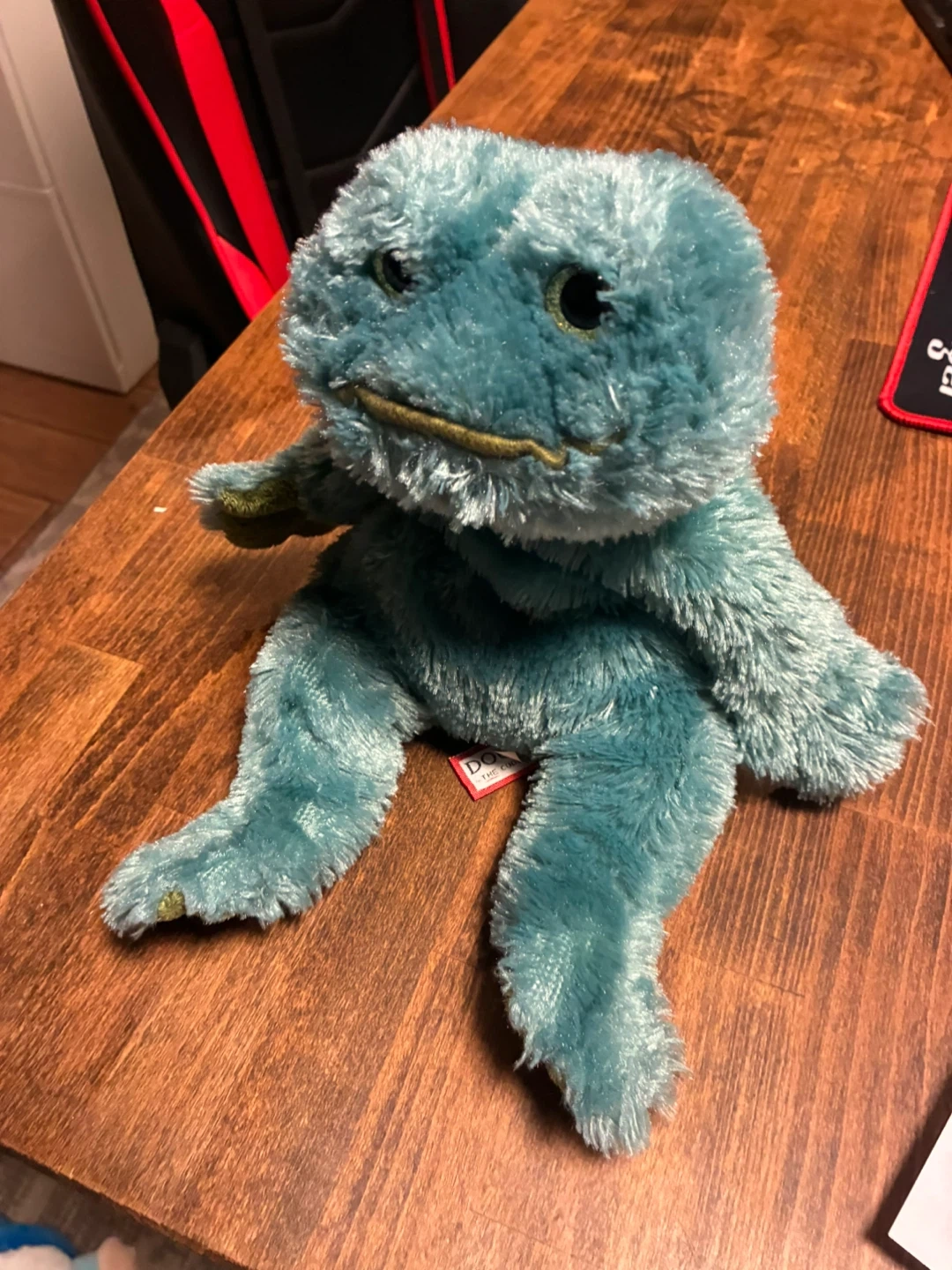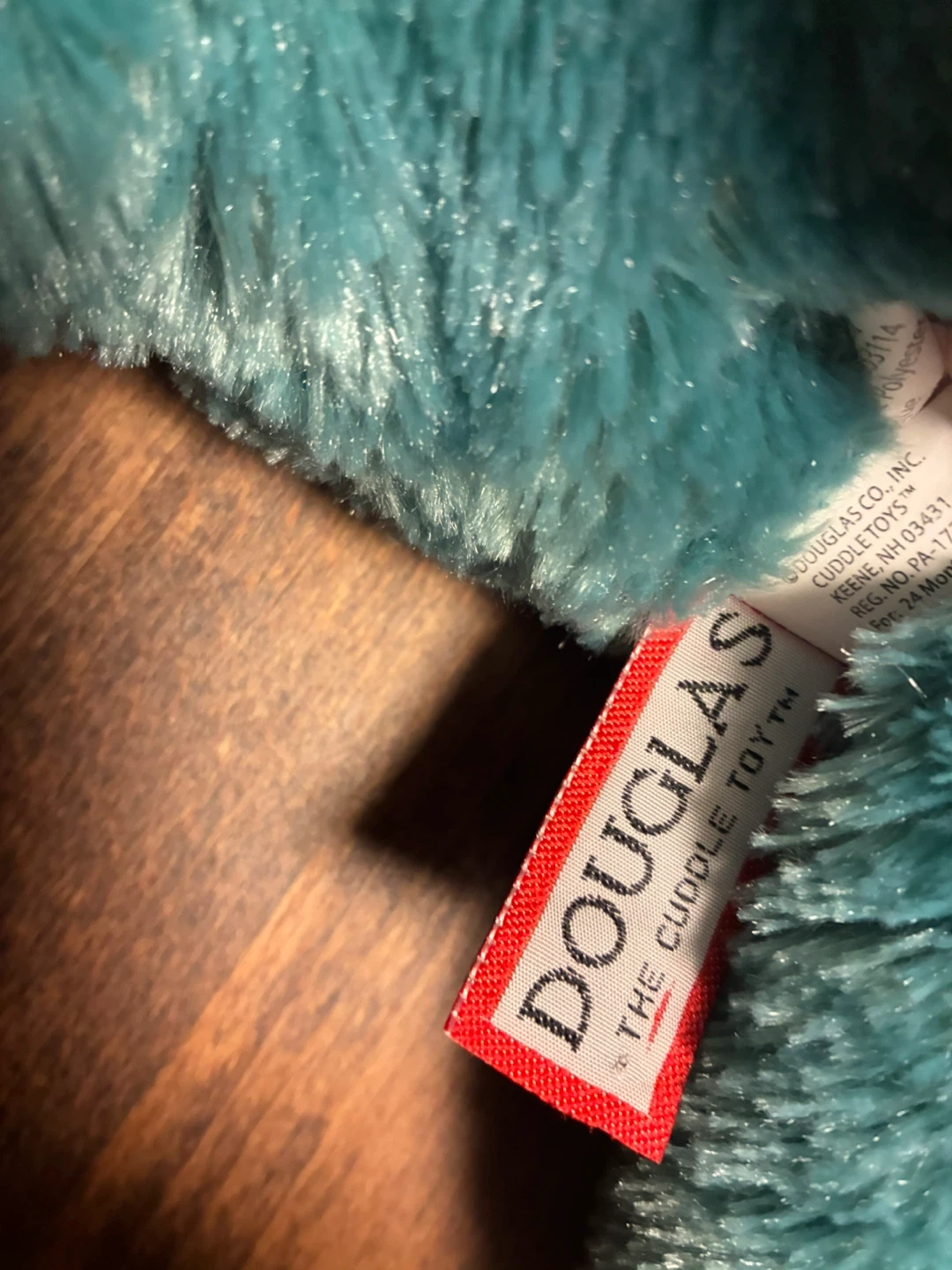 Here's a cute Douglas Cuddle Toy frog plushie! It's in great condition and ready for a new home. The plush is a nice teal colour and has a soft, cuddly texture