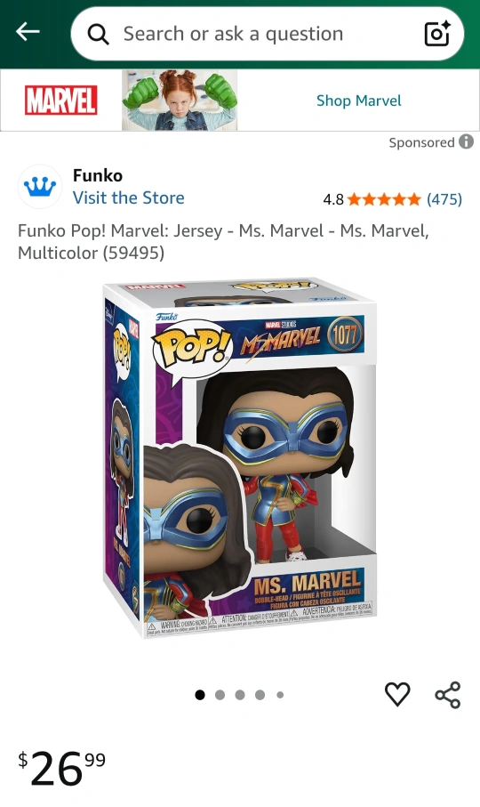 Selling a Funko Pop! Marvel: Jersey - Ms. Marvel - Ms. Marvel, Multicolor (59495). The box is included. Collect them all!