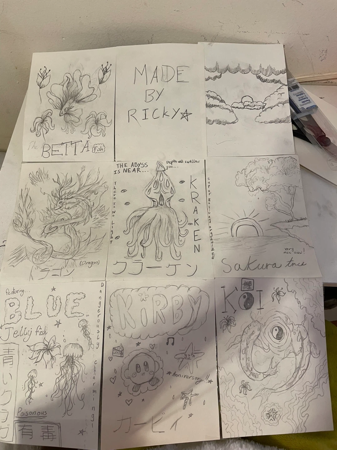 Send me a picture of your design and i will make it into a reality, some designs are in the photos already like Blue Jellyfish, kirby, koi fish, dragon, kraken, a nice view, a type of fish/betta/goldfish/any type.