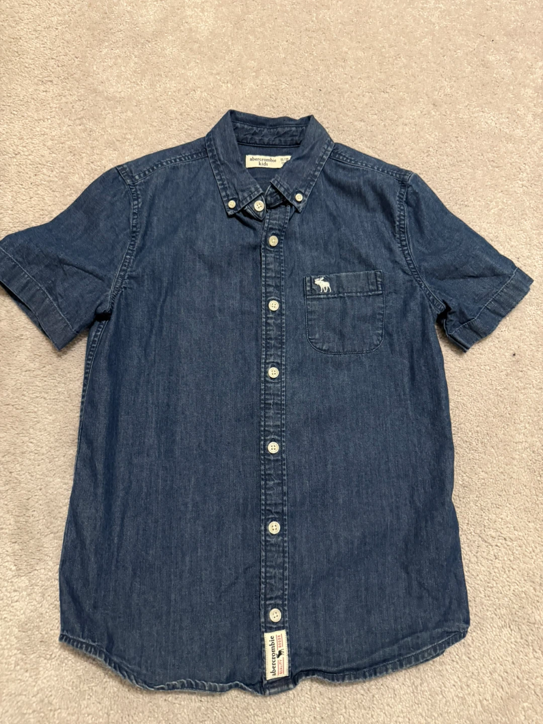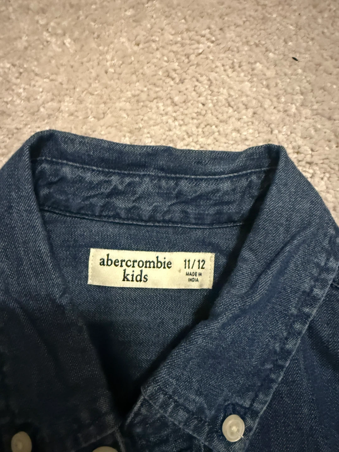 Abercrombie Kids denim shirt in size 11/12. It's in mint condition (never worn) and perfect for your little one! The shirt features a classic button-down style with a pocket on the chest. It's made of comfortable denim material.