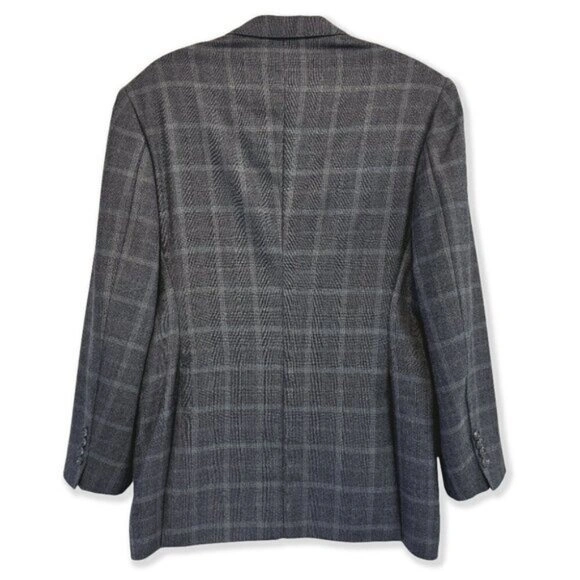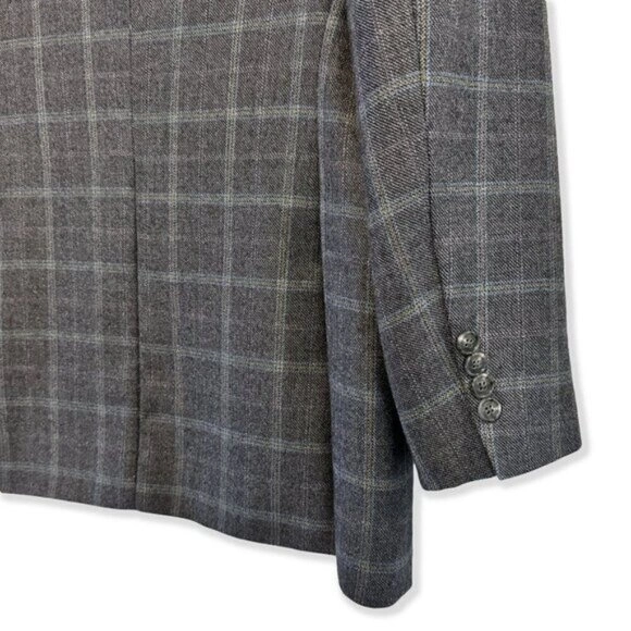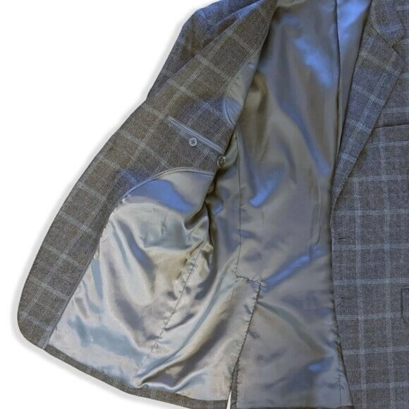 Hand-tailored in Hong Kong in the 1980s, this 100% wool plaid blazer blends classic craftsmanship with today’s trending academia, prep, and heritage menswear styles. Grey check with soft brown/blue tones, fully lined, with interior pen pocket + 2 pockets. Fits like a Men’s 38R or Women’s L/XL for an oversized look. A timeless, high-quality tailored jacket perfect for fall/winter styling.