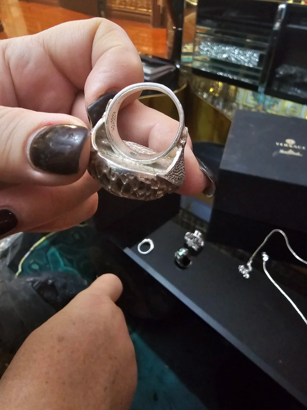 Buy & SellStatement Ring - Size 925 SilverStatement Ring - Size 925 Silver$180Custom made a statement ring, looks to be size 925 silver. 25 grConditionLike newSize9WHERE TO MEETNorth YorkView MapSELLERverifiedmarioLawrence914 reviews0 chats·0 favorites·10 viewsSEND CHAT TO SELLERHi mario! I’m interested in your listing.Hi mario! I’m interested in your listing.Get the Karrot app to chatSign In to chat